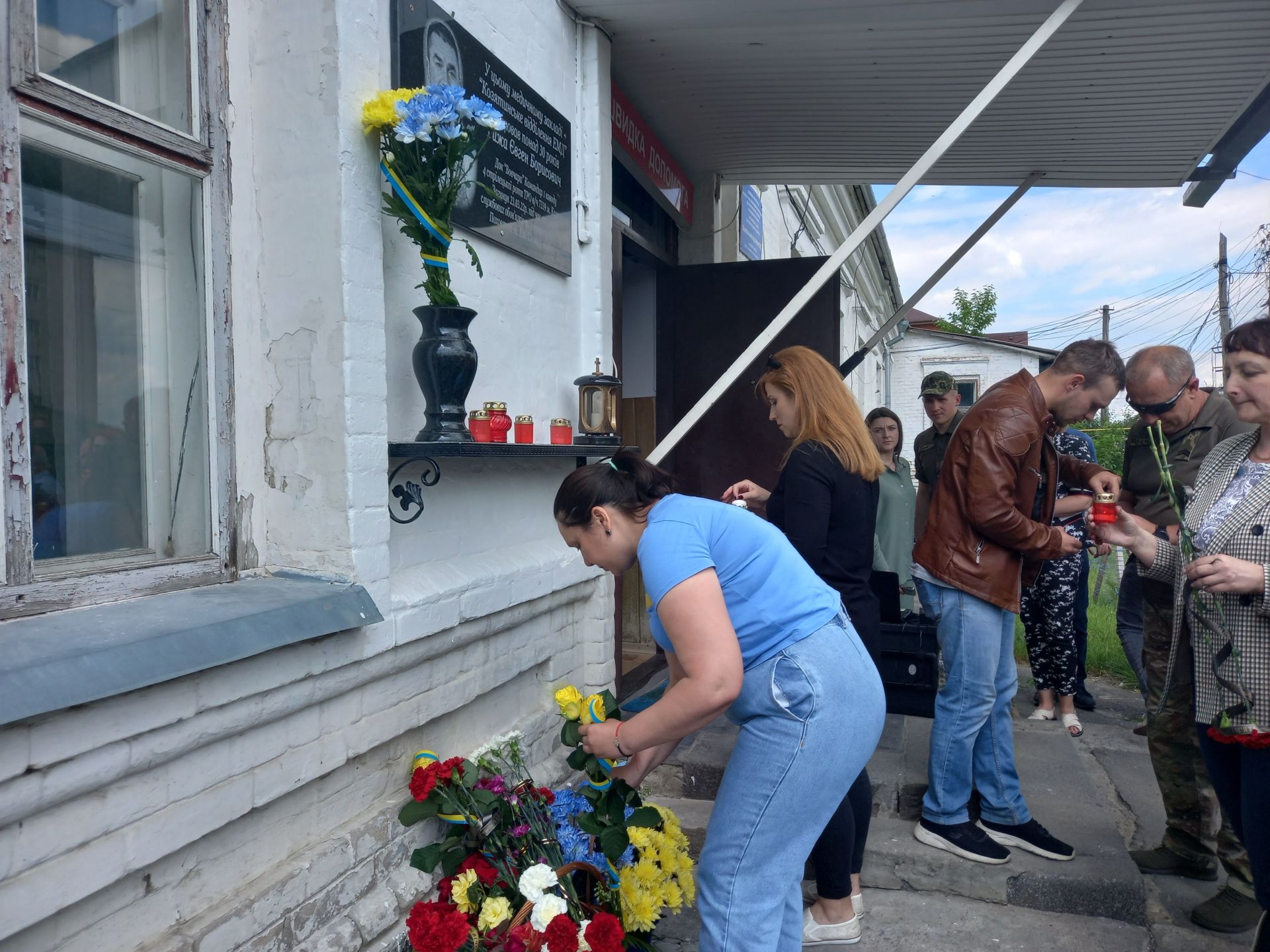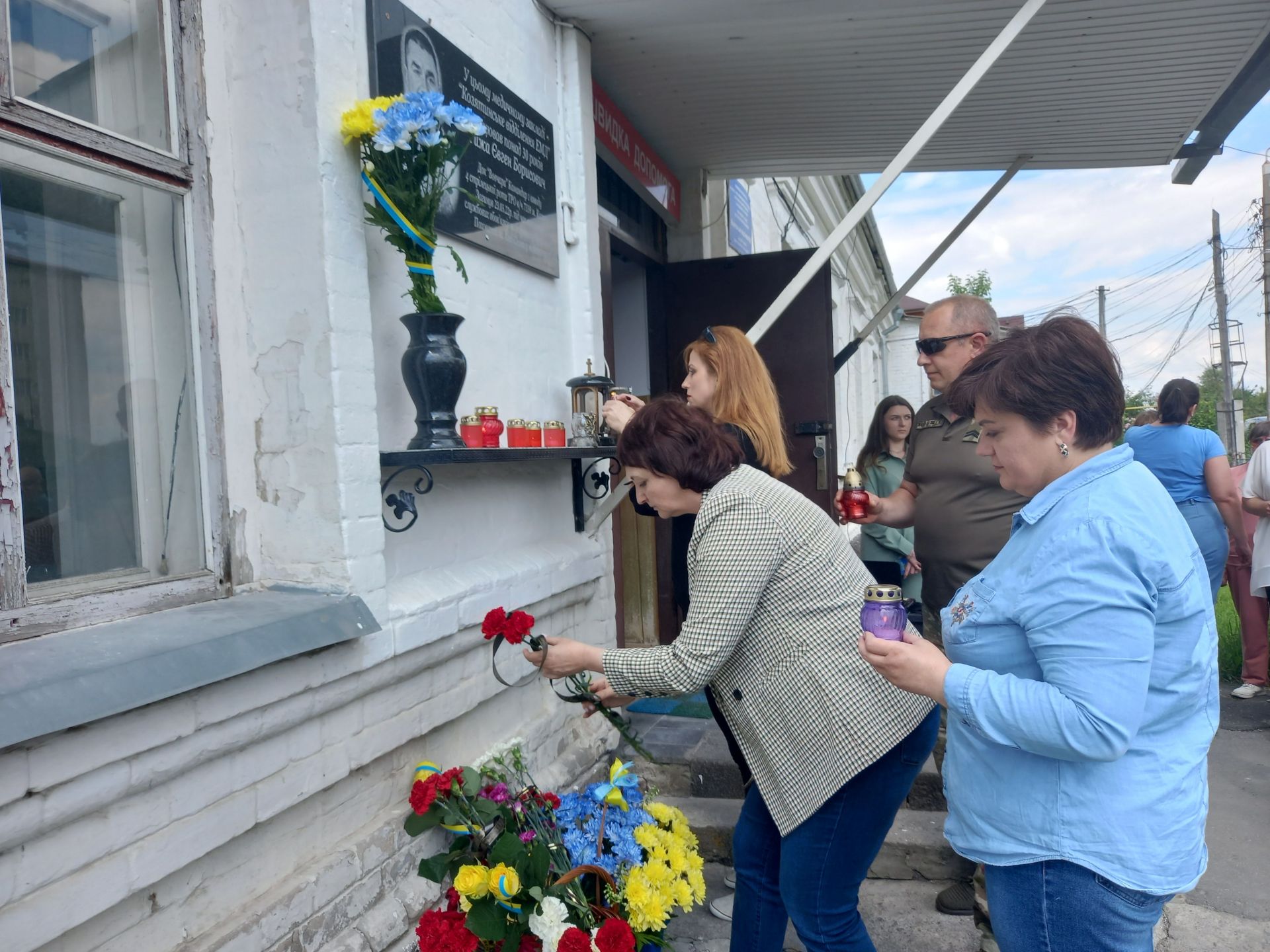 Рідні, друзі та колеги Євгена поклали до пам’ятної дошки квіти і запалили лампадки.