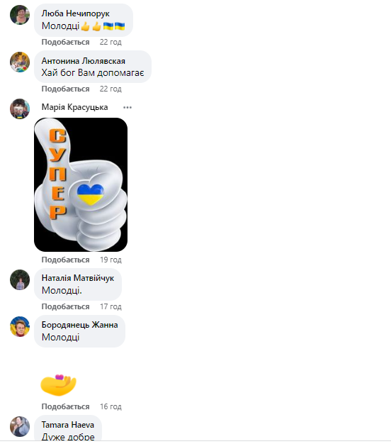 Самгородчани висловлюють своє захоплення такій ініціативі та підтримці ЗСУ