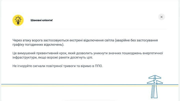 «Через атаку ворога застосовуються екстрені відключення світла (аварійне без застосування графіку погодинних відключень). Це вимушений превентивний крок, який дозволить уникнути значних пошкоджень енергетичної інфраструктури, якщо ворожі ракети досягнуть цілі», — йдеться у повідомленні. В компанії закликали не ігнорувати сигнали повітряної тривоги.