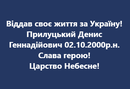 Прилуцький Денис Геннадійович 02.10.2000р.н.