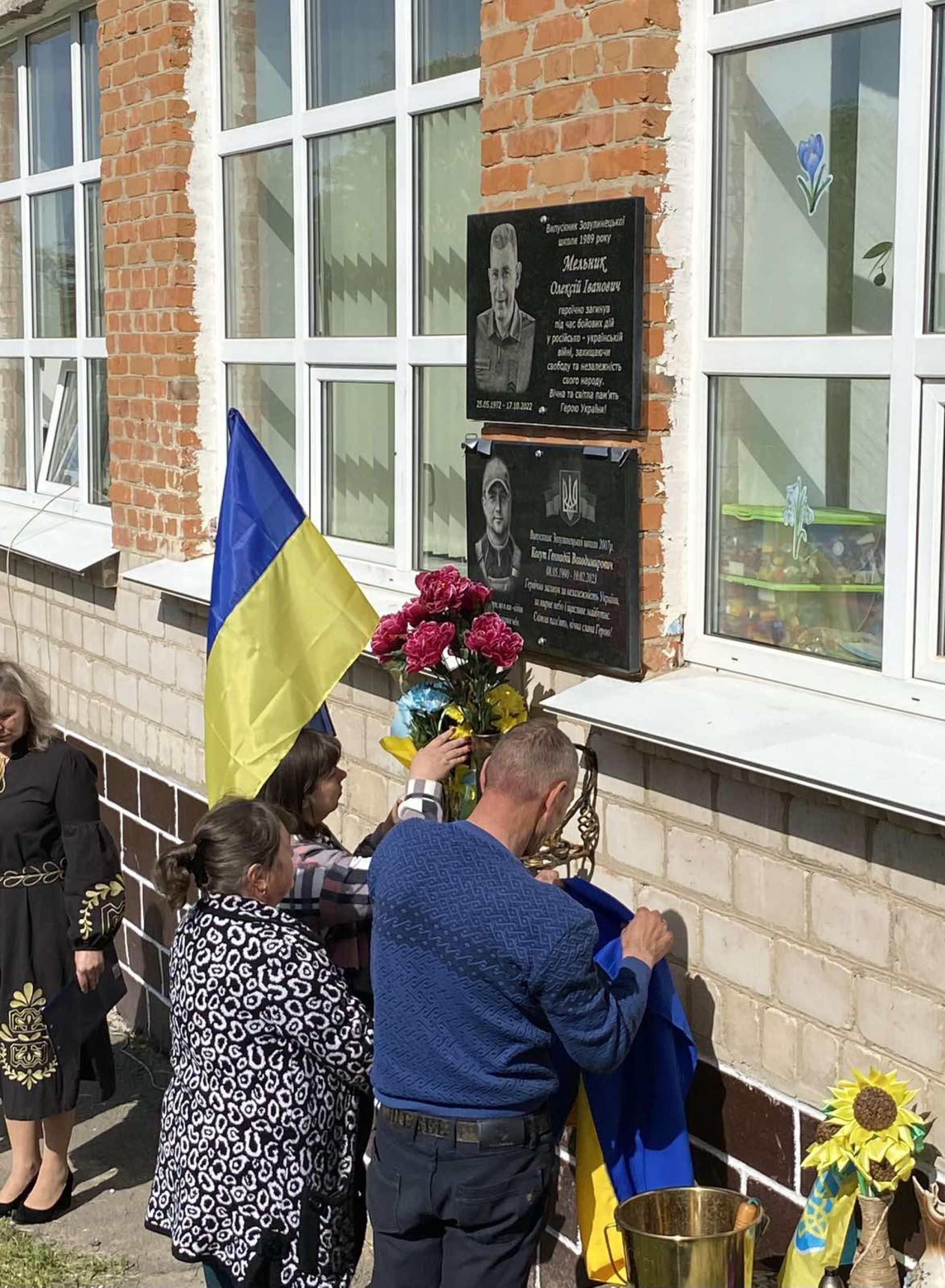 Меморіальні дошки встановили на стіні Зозулинецької гімназії, випускниками якої були Герої.