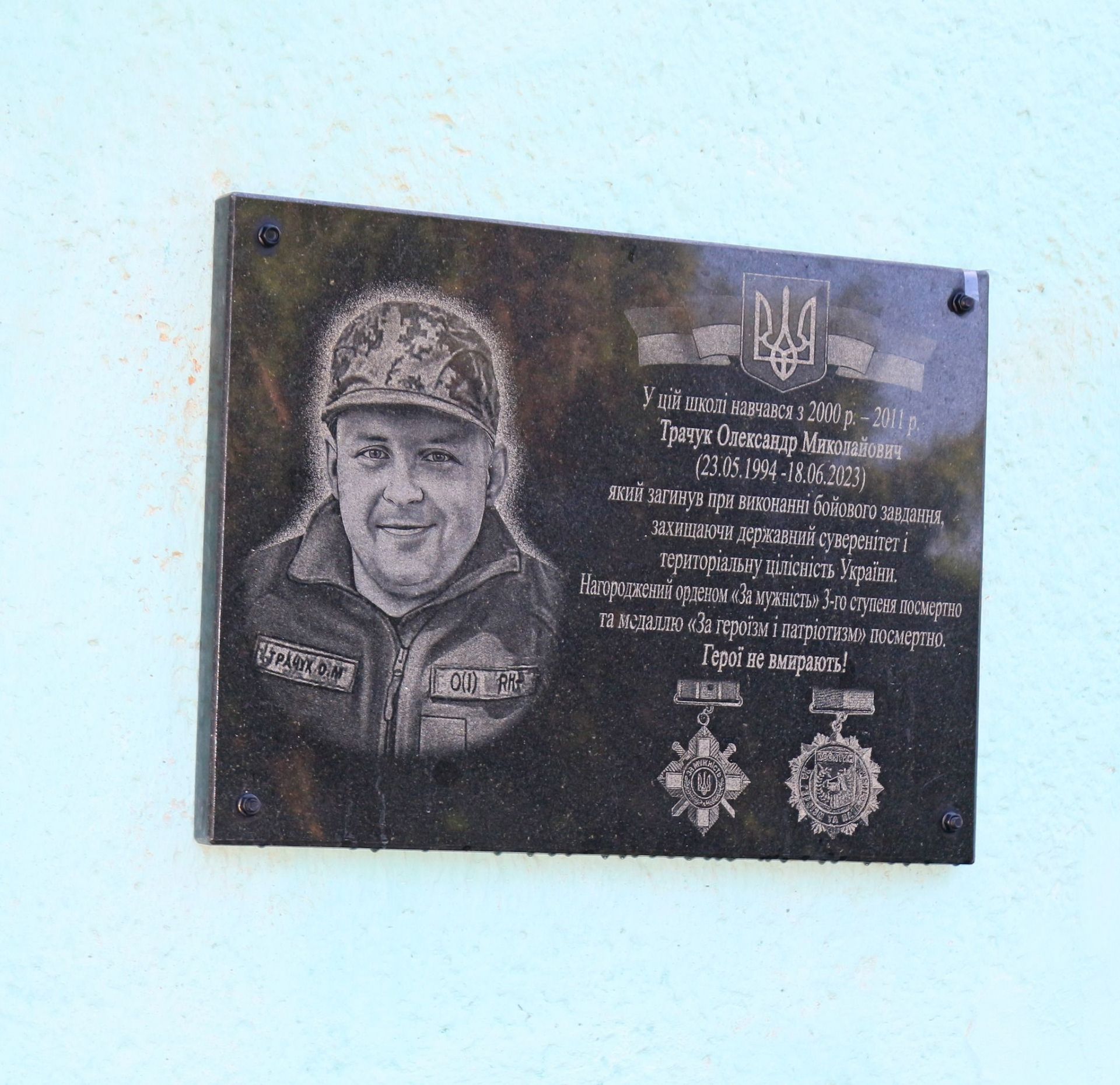 - Сьогодні, 22 травня відбулося урочисте відкриття пам'ятної дошки Герою Олександру Трачуку. Воїну, який загинув у боях за нашу Батьківщину на будівлі школи, де він навчався.