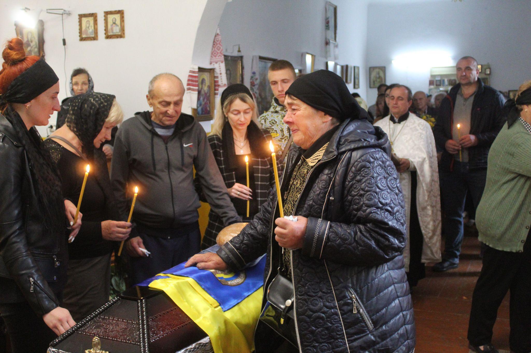 Попрощавшись біля будинку загиблого воїна, траурна процесія рушила за маршрутом: храм Святого пророка Іллі, центральна площа, алея Слави. В церкві настоятель храму Пророка святого Іллі отець Роман та настоятель Свято Покровського храму Отець Іван провели за Героєм заупокійну панахиду.