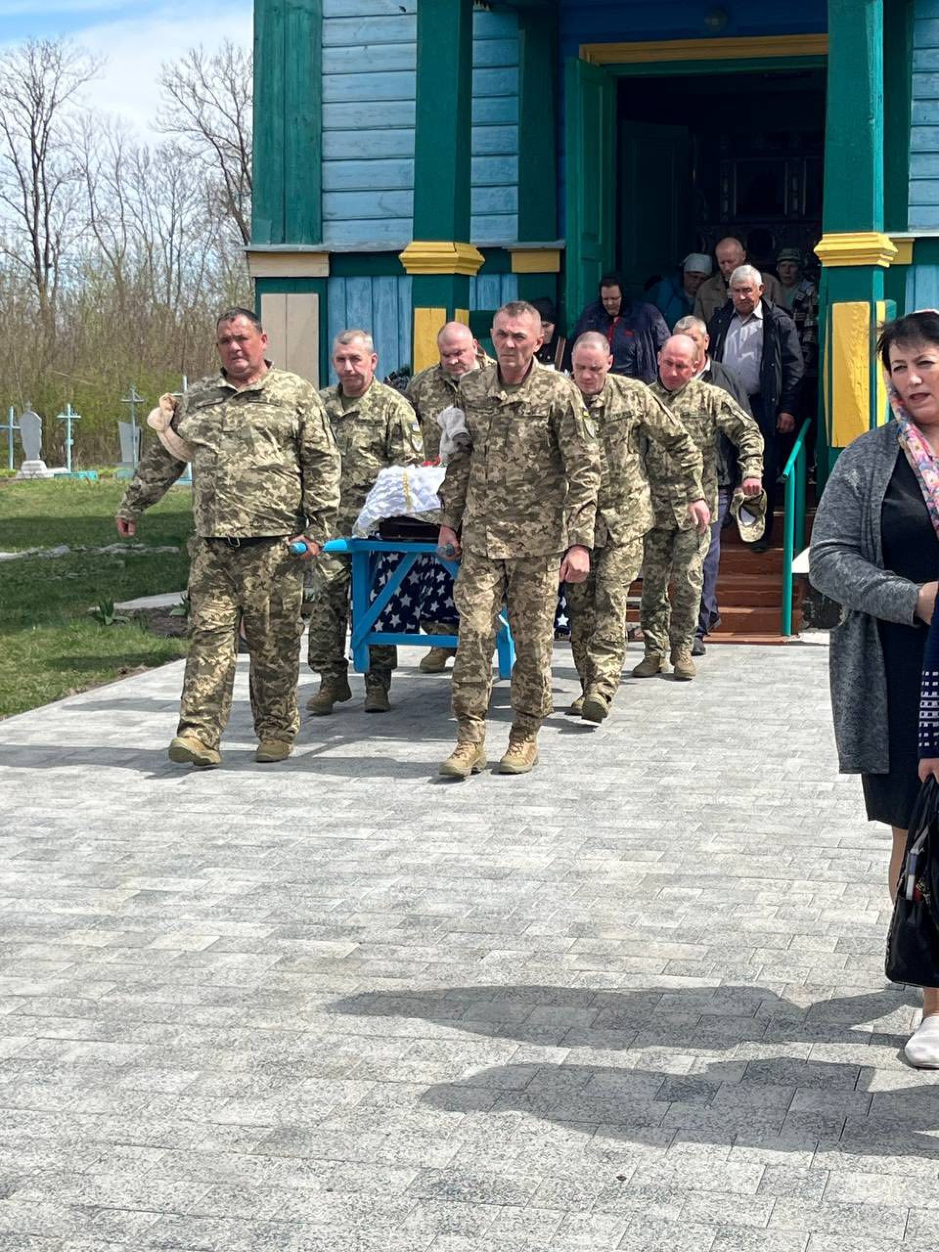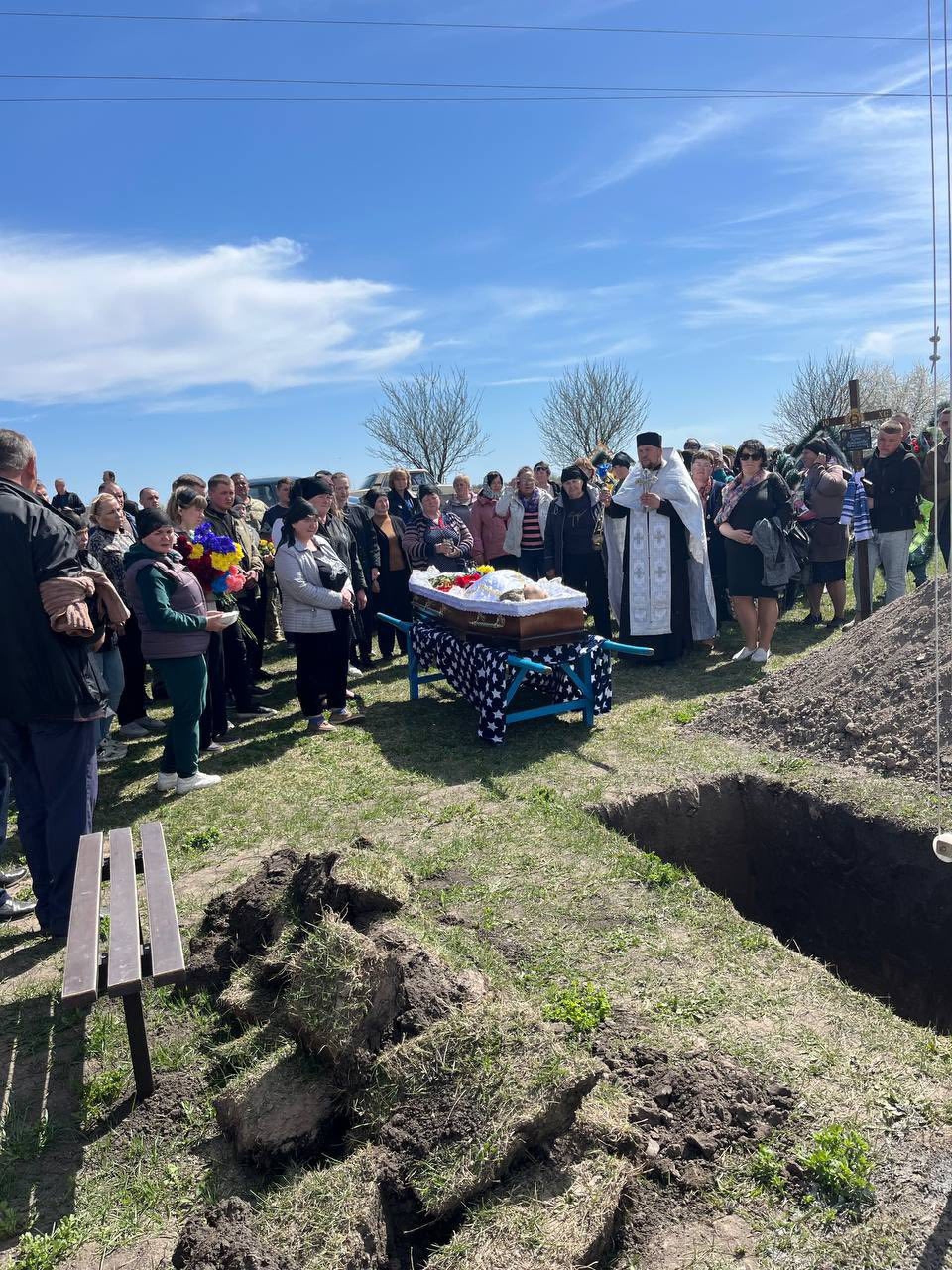 На цвинтарі біля храму пройшов мітинг-реквієм. Із військовими почестями загиблого воїна провели в останню земну дорогу. На його честь прозвучав військовий салют, а тіло віддали землі під звуки Державного Гімну України.