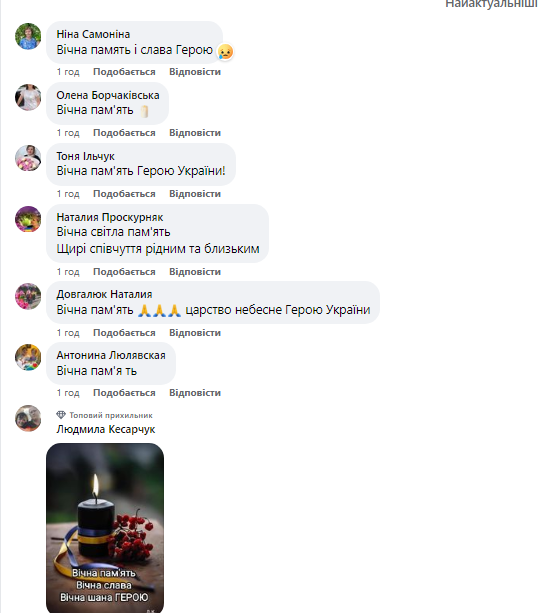Вічна пам'ять та слава Воїну. Щирі співчуття рідним та близьким!