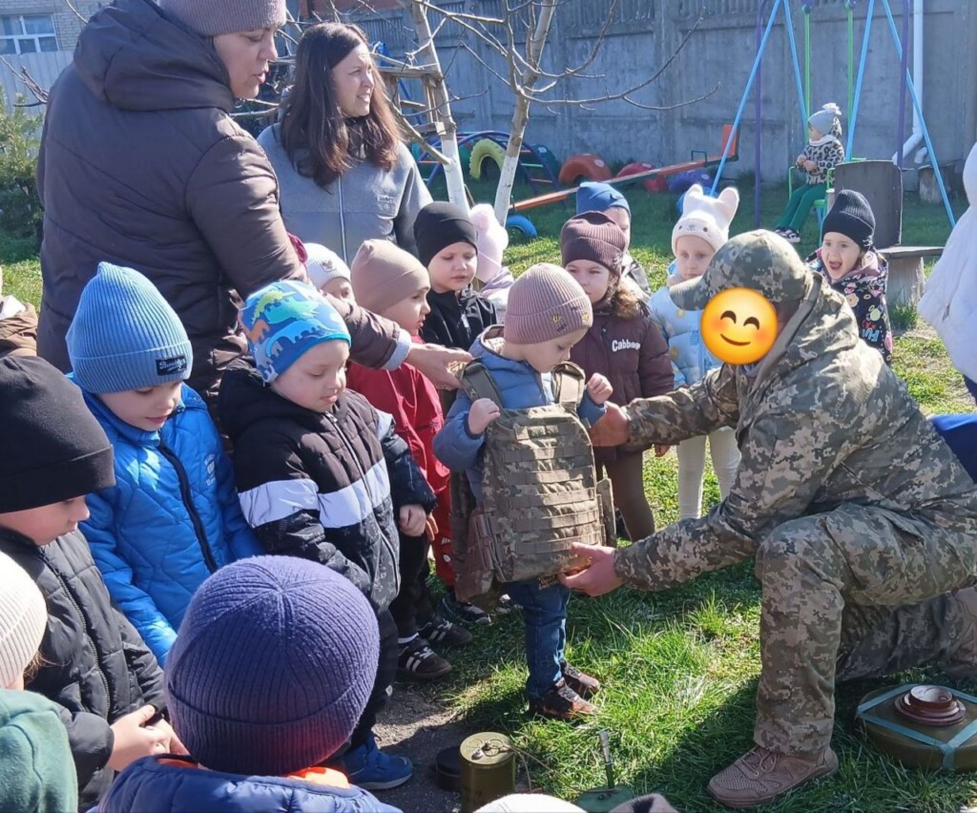 До дитсадка завітали військовослужбовці, які у доступній формі розповіли малечі про небезпечні предмети та правила поведінки у разі їх виявлення. Діти уважно слухали та активно долучалися до спілкування, адже для них гості у формі стали справжніми героями.