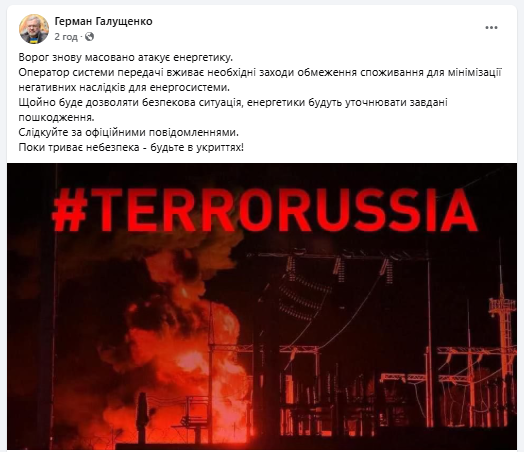 - Сьогодні вночі ворог знову бив по енергетичній інфраструктурі.