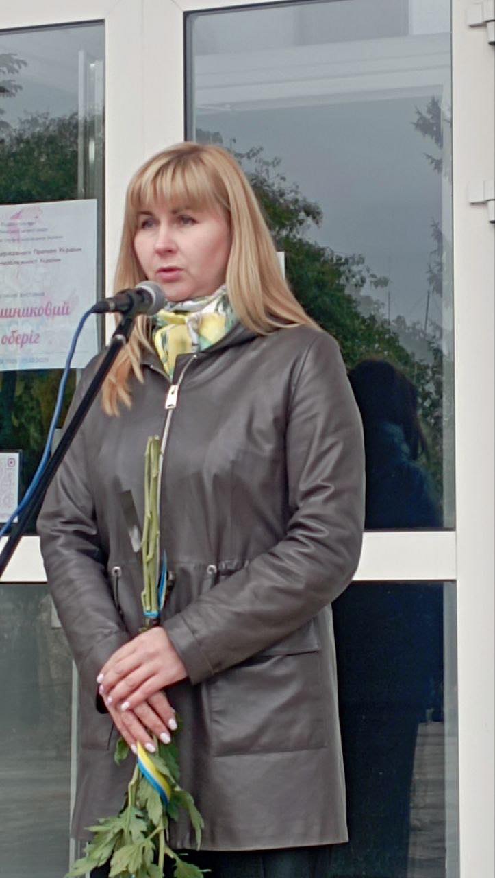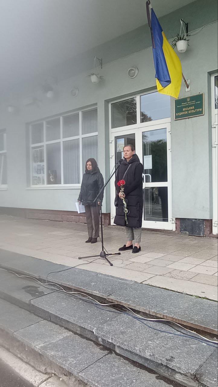 Мітинг жалоби за загиблим захисником України відкрила начальник відділу культури Світлана Рибінська.