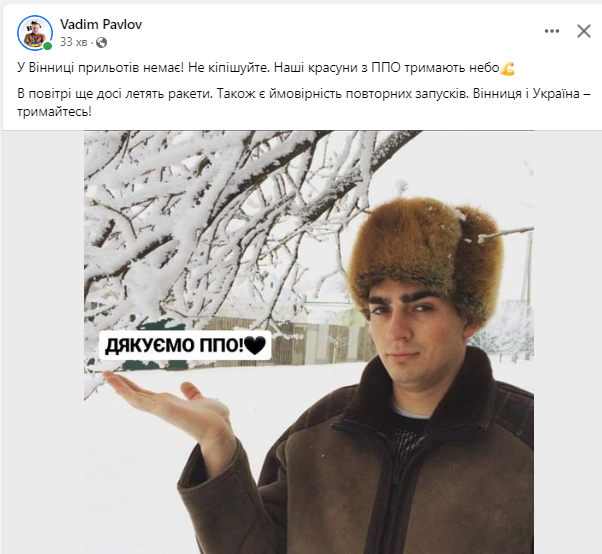 — Під час повітряної тривоги знаходьтесь в укритті! Ворог здійснив пуск крилатих ракет! — написав на офіційній сторінці Сергій Борзов - голова Вінницької ОДА