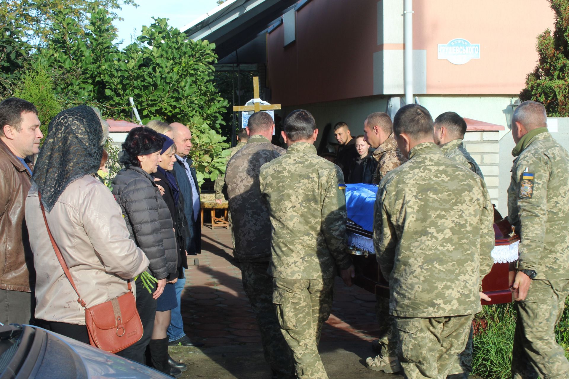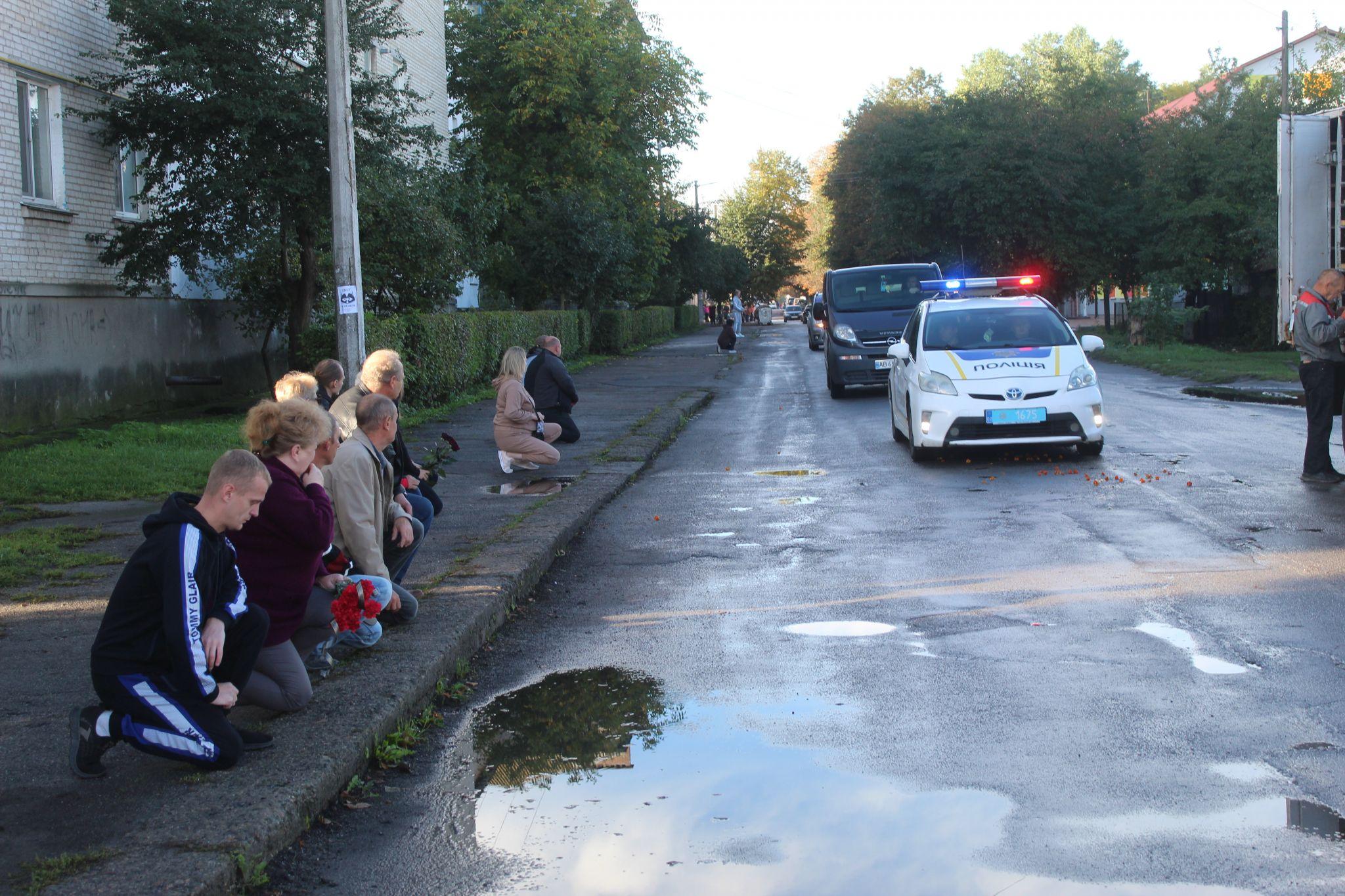 До будинку Героя кожних півгодини підходили близько 2-х десятків нових людей, а службу Божу за загиблим воїном проводили Отець Валерій та Антон Борис — священик Української Греко-Католицької церкви. Провівши заупокійну молитву, траурна процесія взяла курс на центральну площу міста.