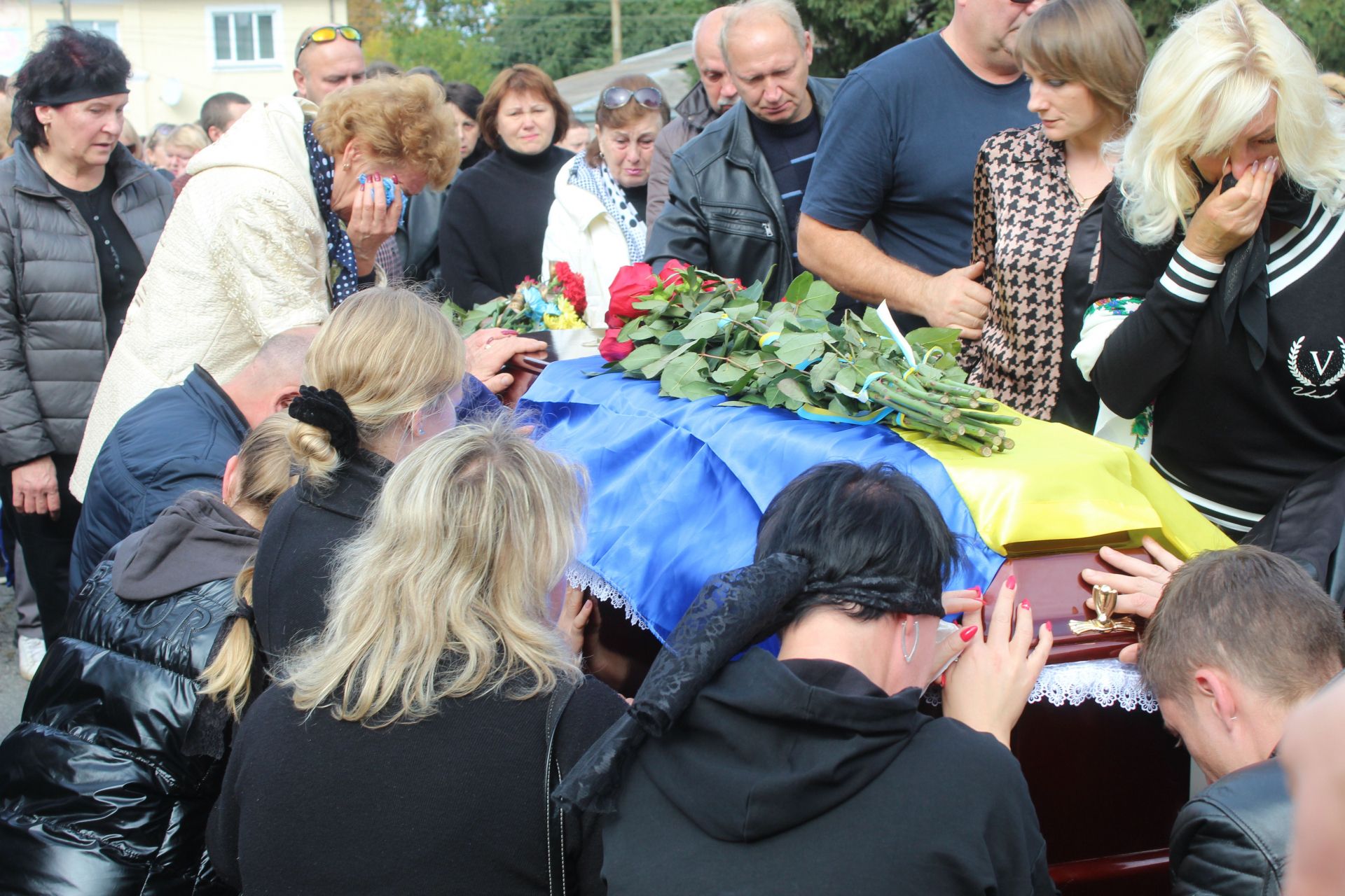 Після виступів на мітингу громада стала прощатися з захисником України. У Валерія при житті було багато друзів. Кожен хотів віддати шану своєму і нашому захиснику, тож процедура прощання з ним трохи затягнулася.