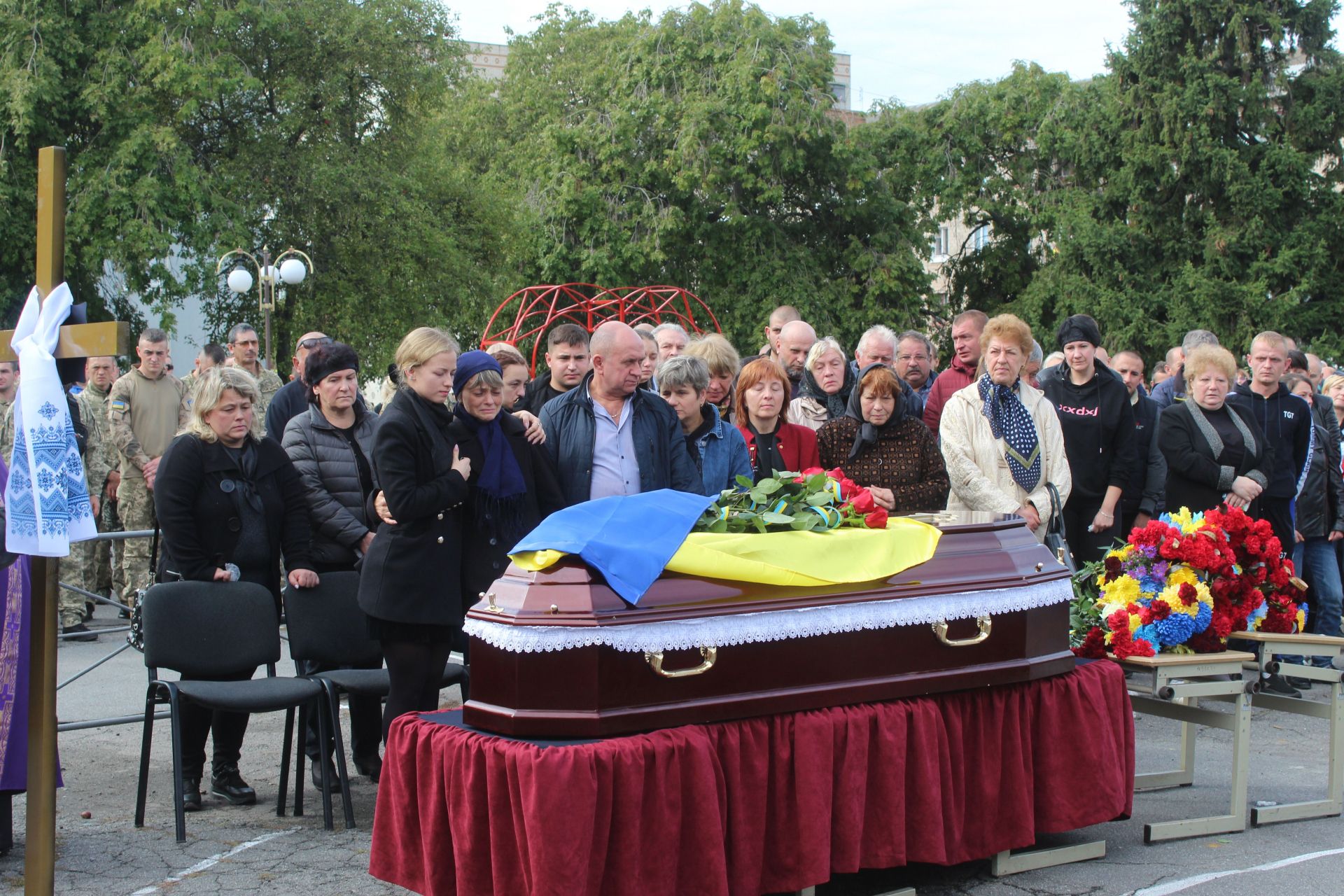 - В останню дорогу безстрашного воїна прийшли провести рідні і родичі захисника України, його сусіди, колеги по роботі та однокласники.