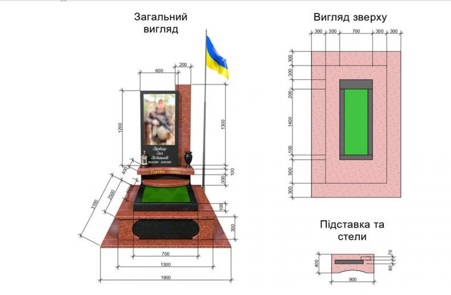 Затвердив виконком також типовий ескіз для надгробків. Їх виготовлятимуть із каменю. Поруч із місцем поховання обов’язково встановлюватимуть флагшток із Державним прапором. Виготовлення та встановлення надмогильних пам’ятників також проводиться за бюджетні кошти.