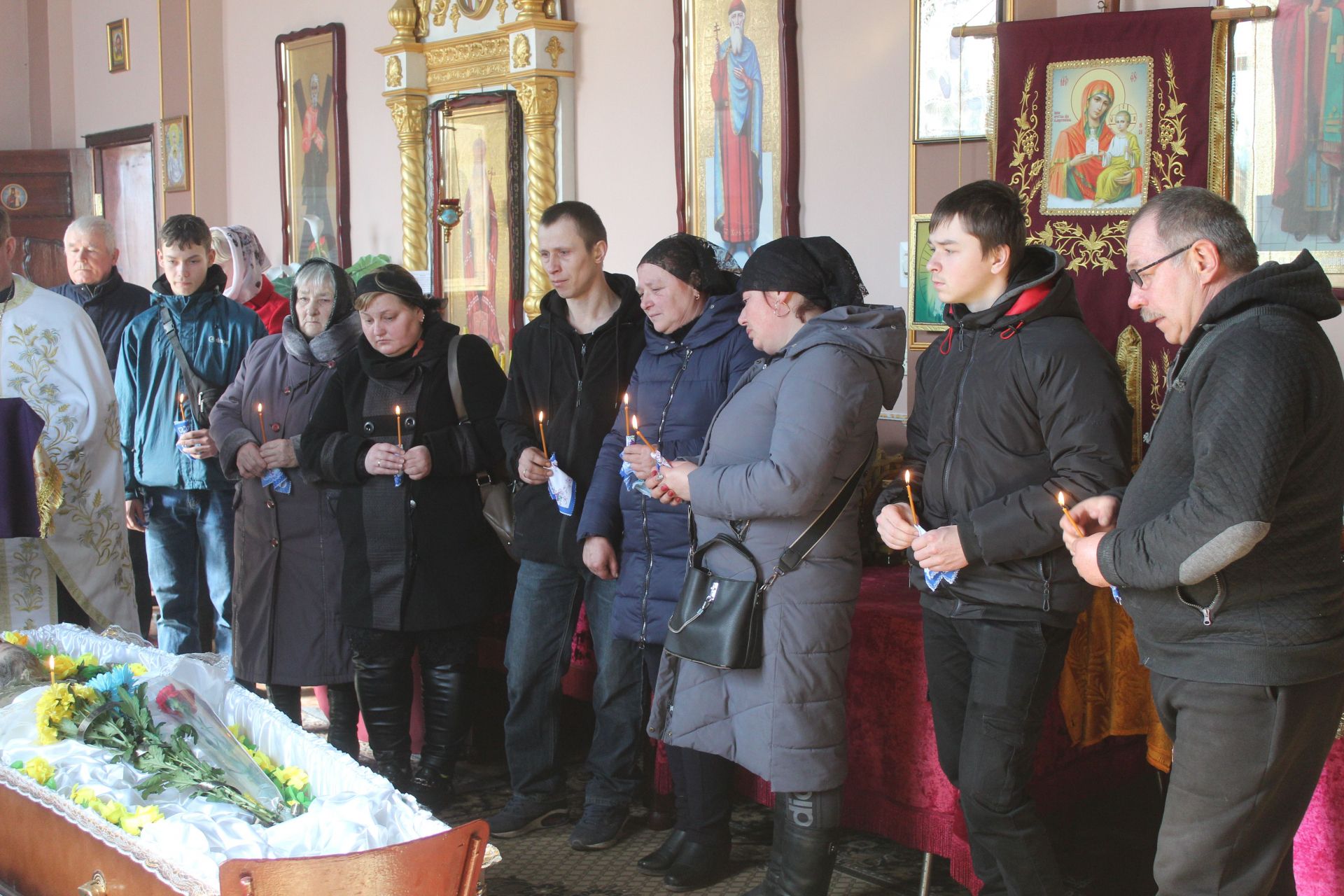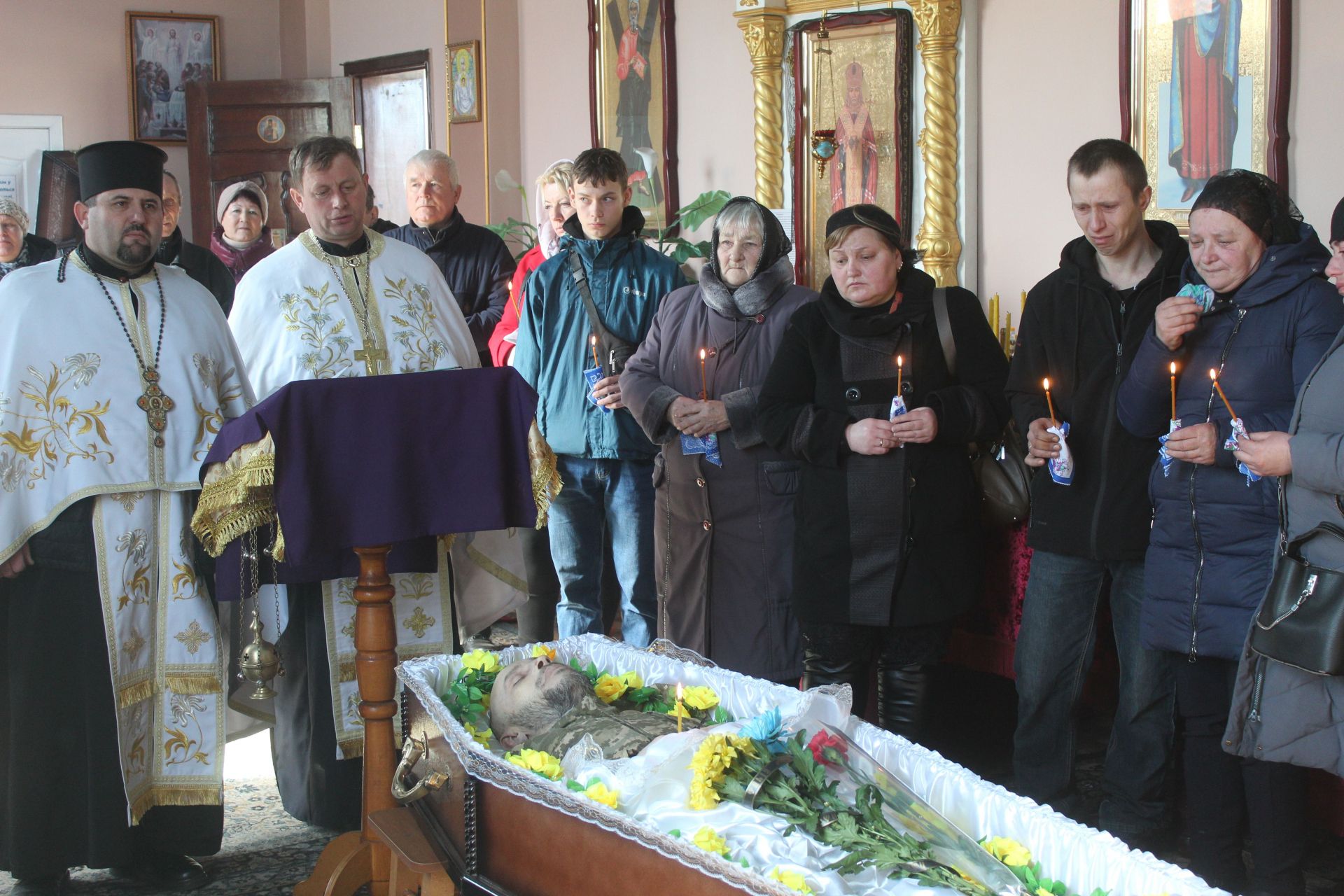 Почала Козятинська громада прощалися з захисником України 15 березня в храмі Покрови пресвятої Богородиці. Рідні і близькі воїна тримали в руках поминальні свічки, а священники отець Василь, отець Роман та отець Іван проводили службу Божу, в якій просили у Всевишнього гідного місця загиблому воїну у царстві небесному. По завершення заупокійної молитви траурна колона пішла на площу, де й відбувся прощальний мітинг з Героєм.