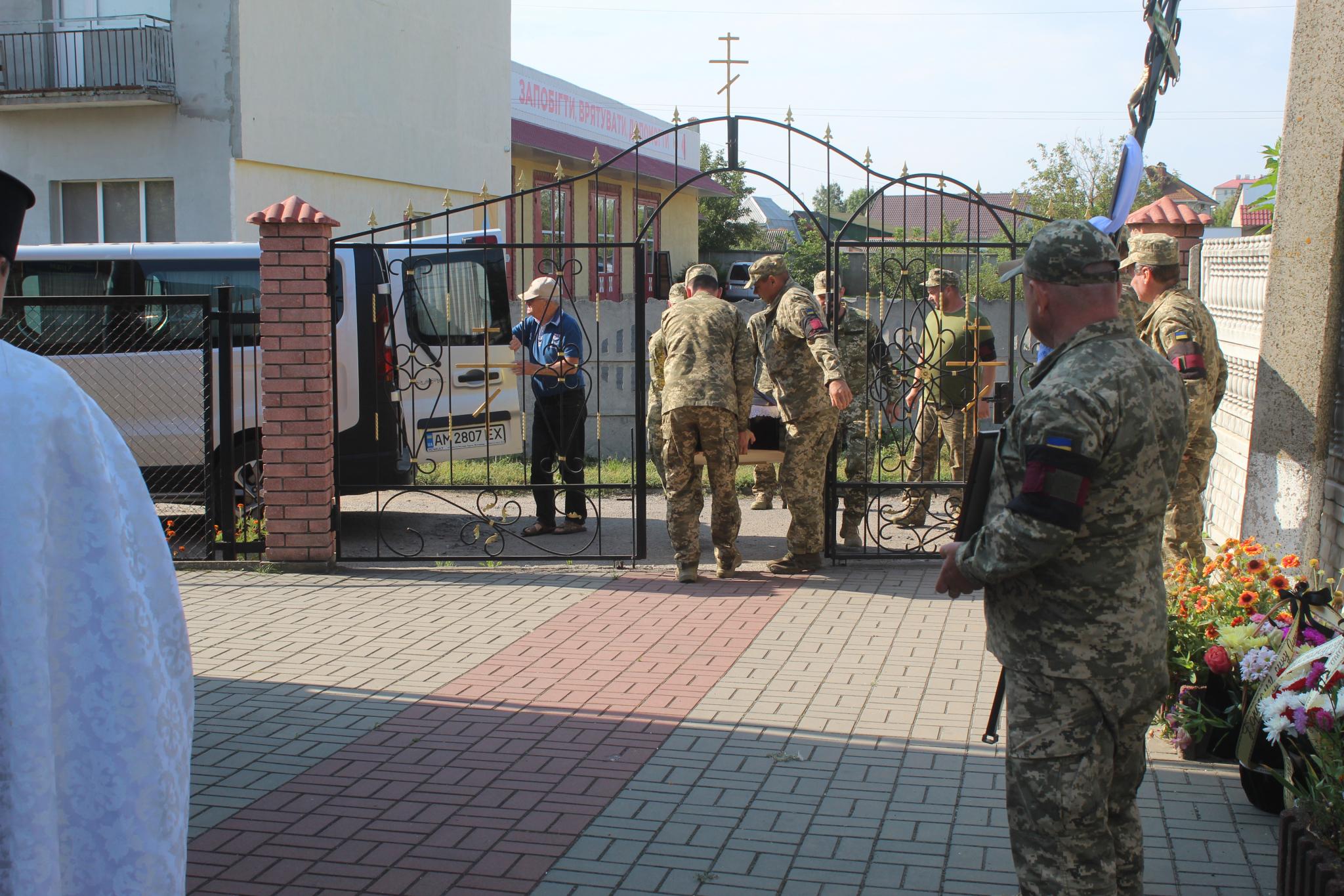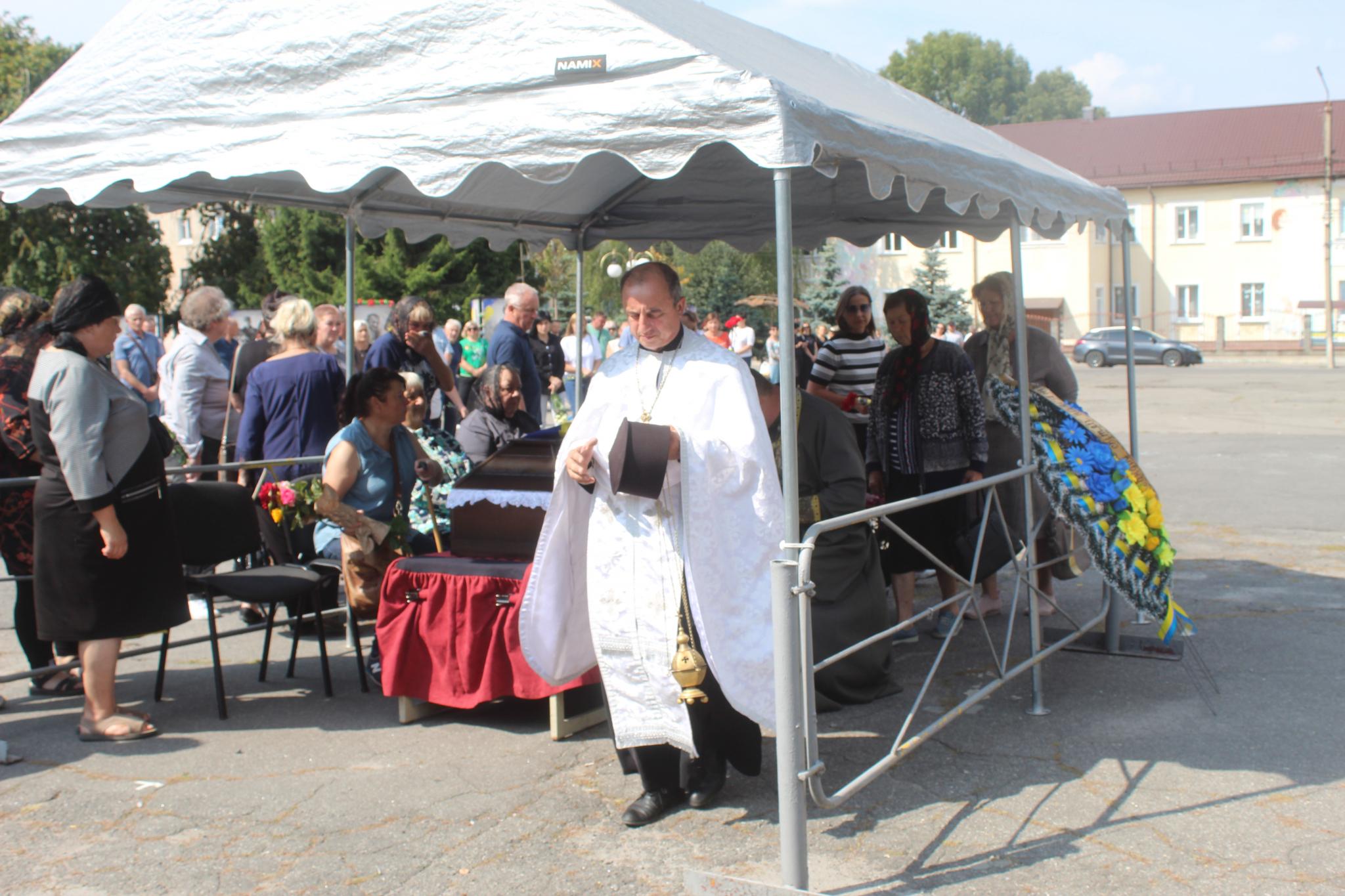 Перше прощання з загиблим воїном було у церкві Покрови пресвятої Богородиці. Чин похорон за загиблим воїном провели військовий капелан Олександр та настоятель храму Святого Пророка Іллі митрофорний протоїєрей Роман Масира. Після заупокійної панахиди, траурний кортеж в супроводі обох священиків ПЦУ рушив на площу, де з загиблим воїном прощалася громада. Відкрила мітинг жалоби начальник відділу культури Козятинської міськради Світлана Рибінська. Вона у вступному слові нагадала присутнім, чого прагне ворог і що йому не вдається задумане тому, що там стоять хлопці.