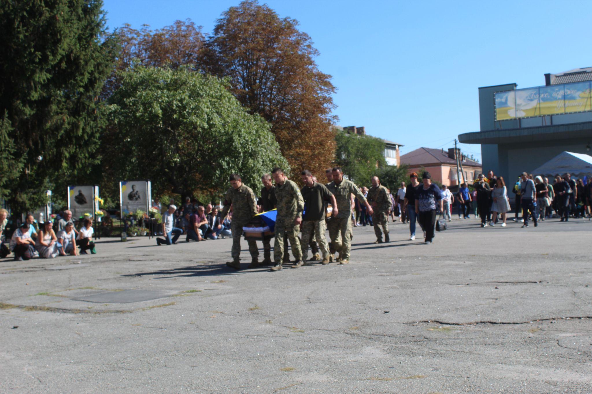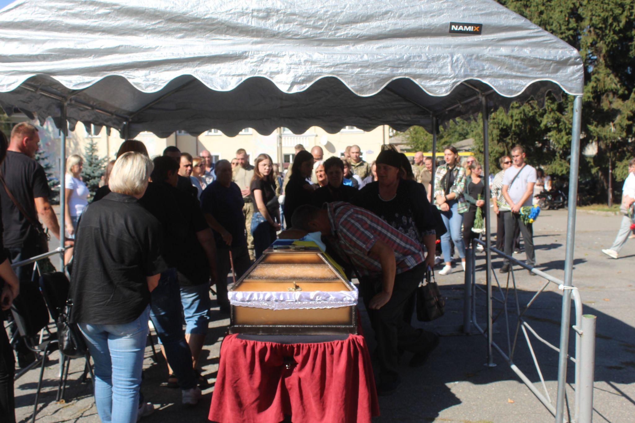 Після виступів із загиблим воїном стала прощатися громада. Людей зібралося не дуже багато та майже кожен переймався болем і більше звичного затримувався, стоячи на колінах біля труни Героя.