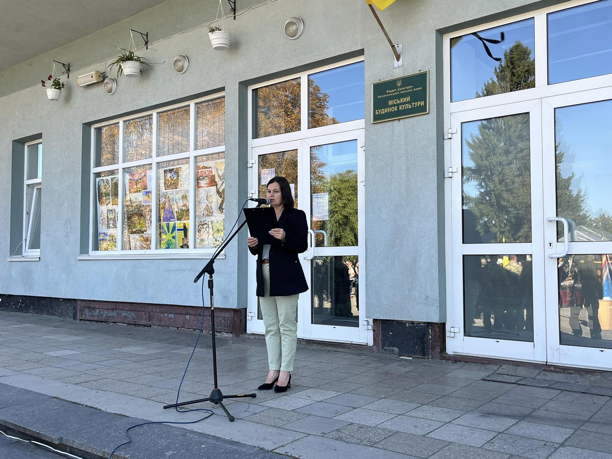 Продовжили прощання з Героєм на площі. Мітинг реквієм відкрила начальник відділу культури міської ради Світлана Рибінська. У вступному слові вона сказала: