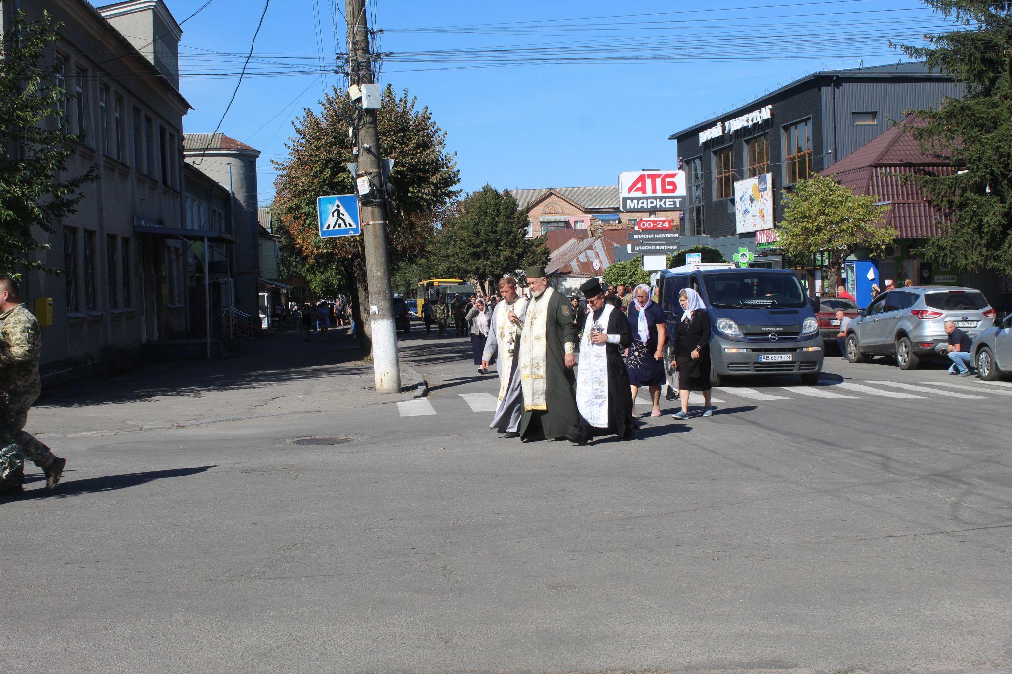 Військовий капелан провів заупокійну панахиду і траурна колона рушила до храму Святого пророка Іллі. Чин похорон провели настоятель храму отець Роман та його тезка, капелан військової частини.