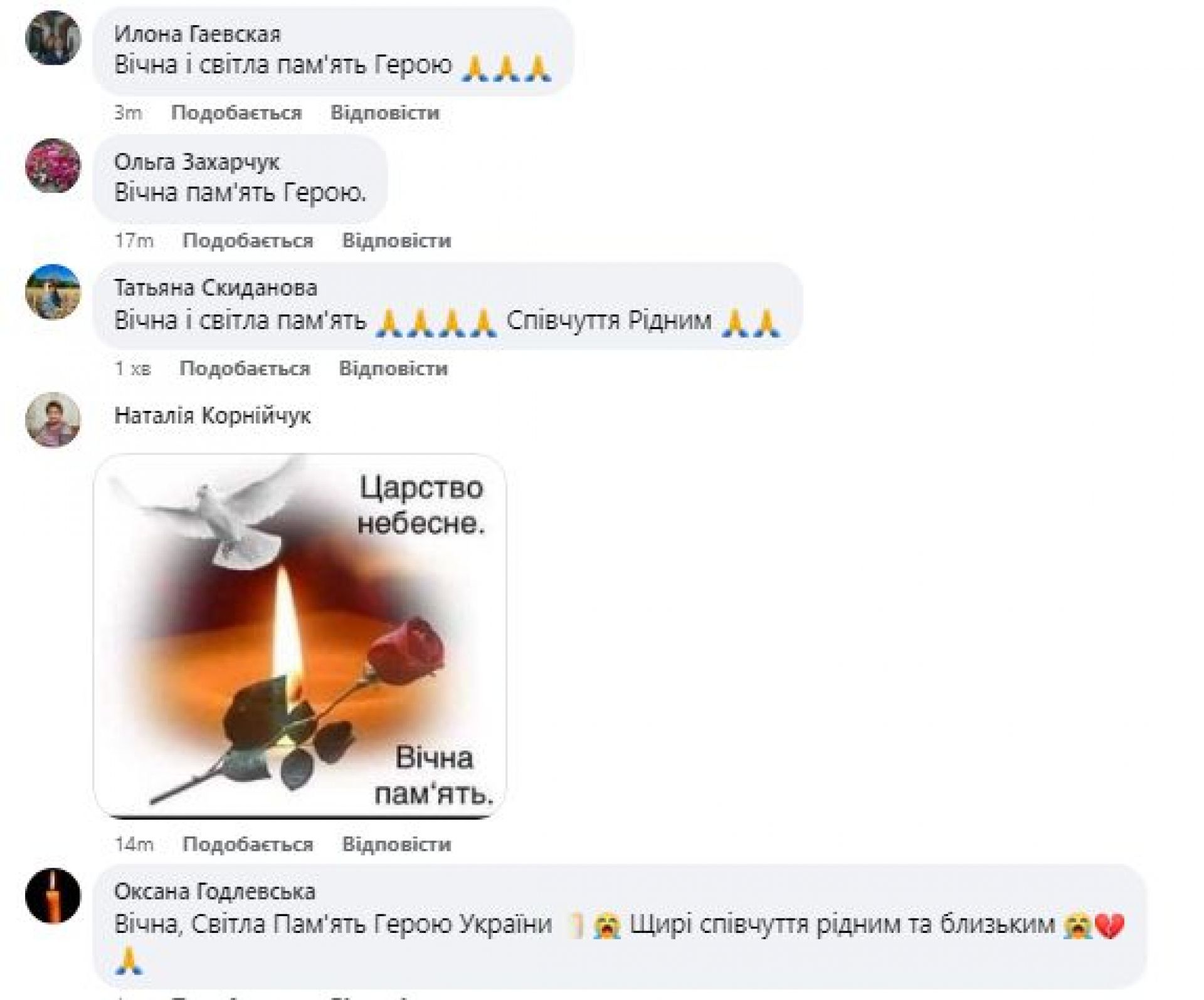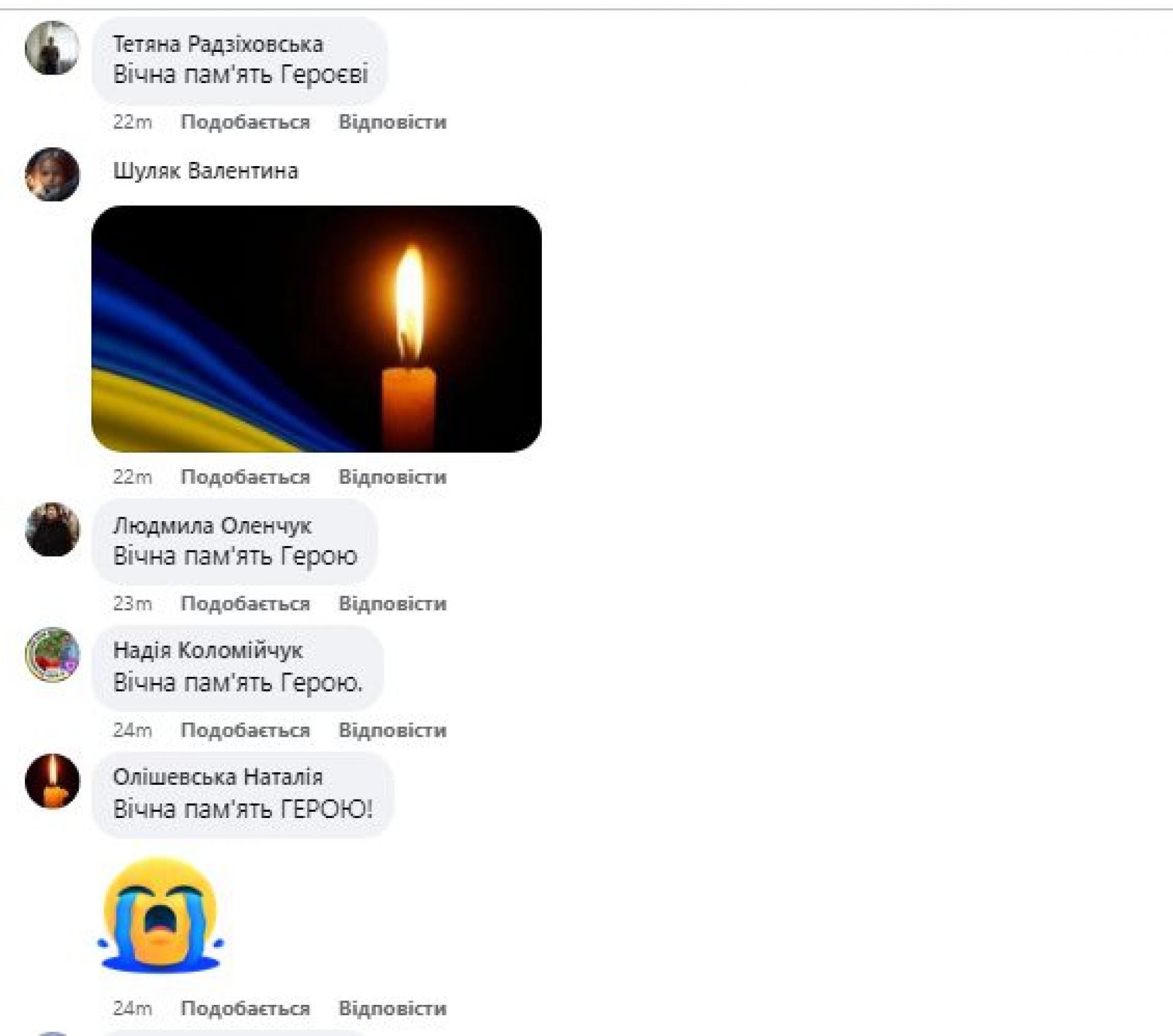 — Вічна слава та памʼять полеглому Герою. Додаткову інформацію повідомимо згодом, — йдеться у дописі