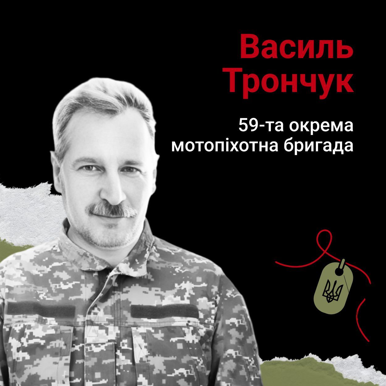 - Головний сержант Василь Трончук, позивний Васильович, загинув 27 лютого 2023 року, виконуючи службові обов’язки.