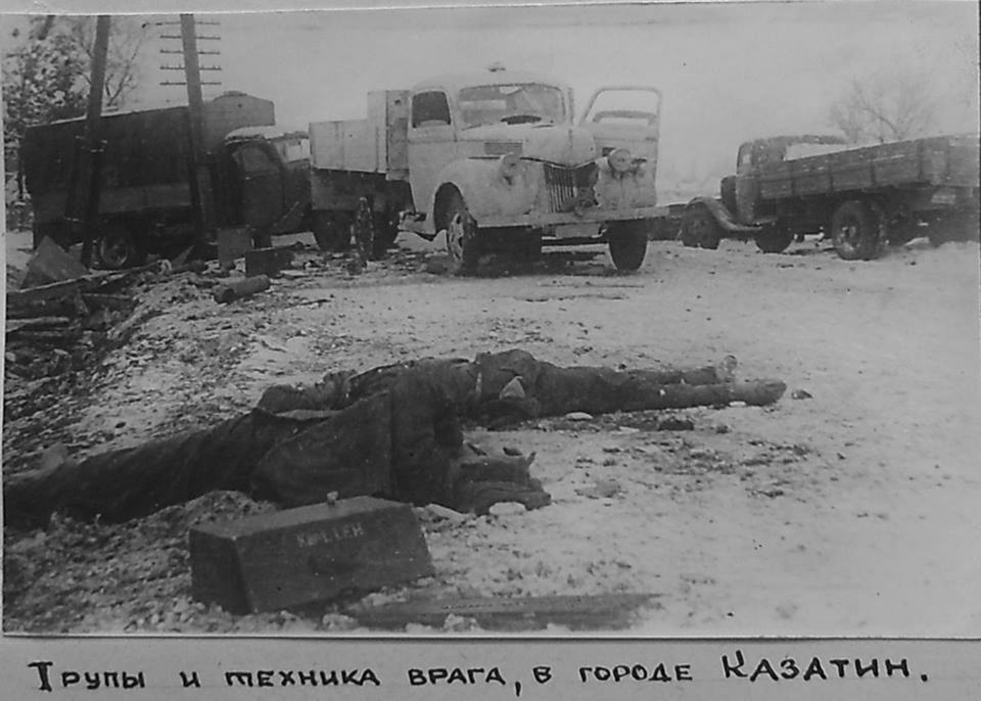 (...) 1 ТА (танковая армія) главными силами до подхода пехоты в течение дня оставалась в районе Казатин. Частью сил армия совместно с пехотой 38 армии вела бои против контратакующих с направления Бердичев 110 танков и мотопехоты противника. К исходу дня на этом участке танки 1 ТА вели бои в боевых порядках пехоты в районе м. Билопилля (с. Белополье Казатинского района), Непедивка (Непёдовка Казатинского района)»