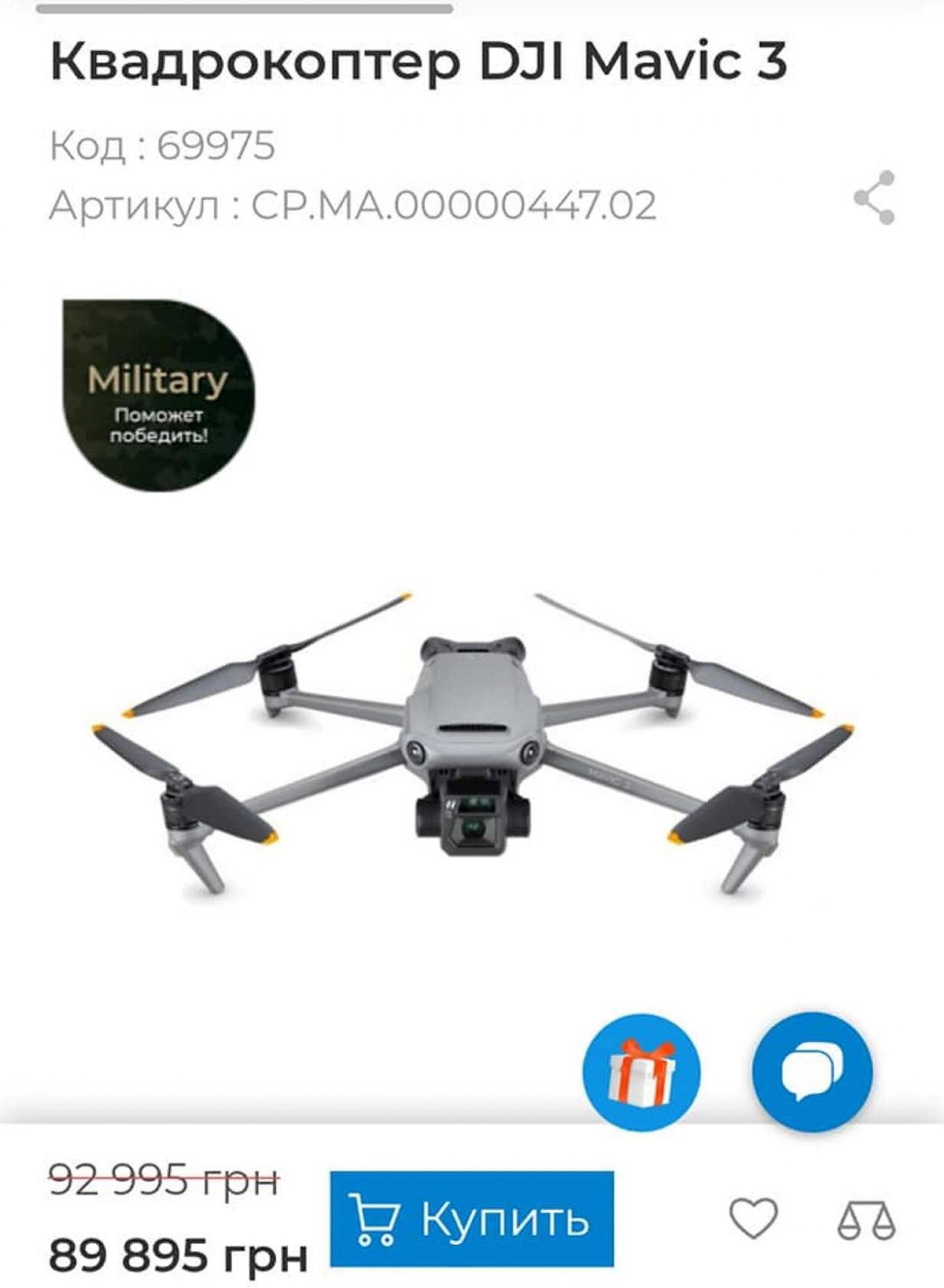 До свого посту Сергій додав інформацію про середній по ціні квадрокоптер Mavic 3. Він коштує орієнтовно 90000 грн, має досить не погану камеру зі збільшенням, та функцію автономного повернення назад.