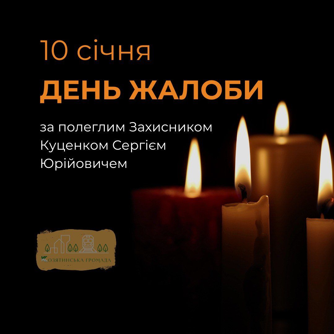 - Завтра, 10 січня, в Козятинській громаді оголошено днем жалоби за полеглим Захисником Сергієм Куценком.