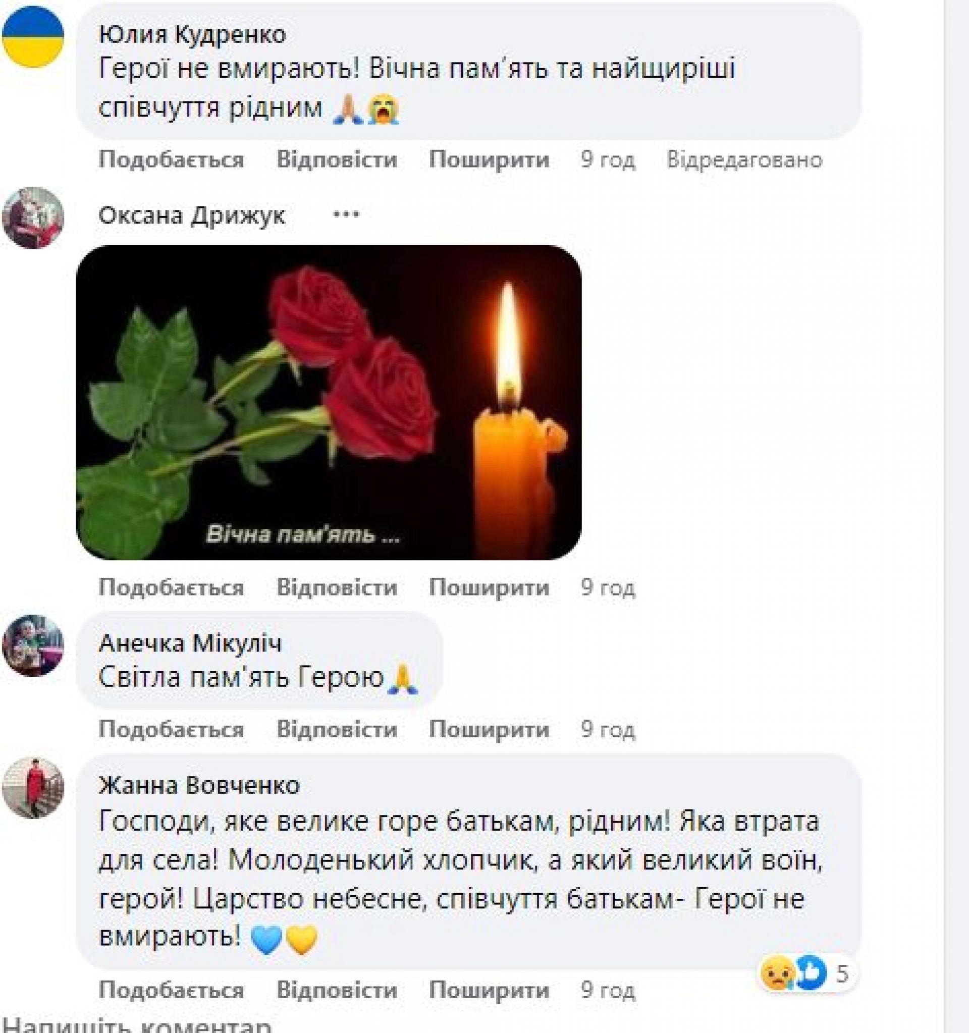 Редакція висловлює щирі співчуття рідним та близьким загиблого Героя