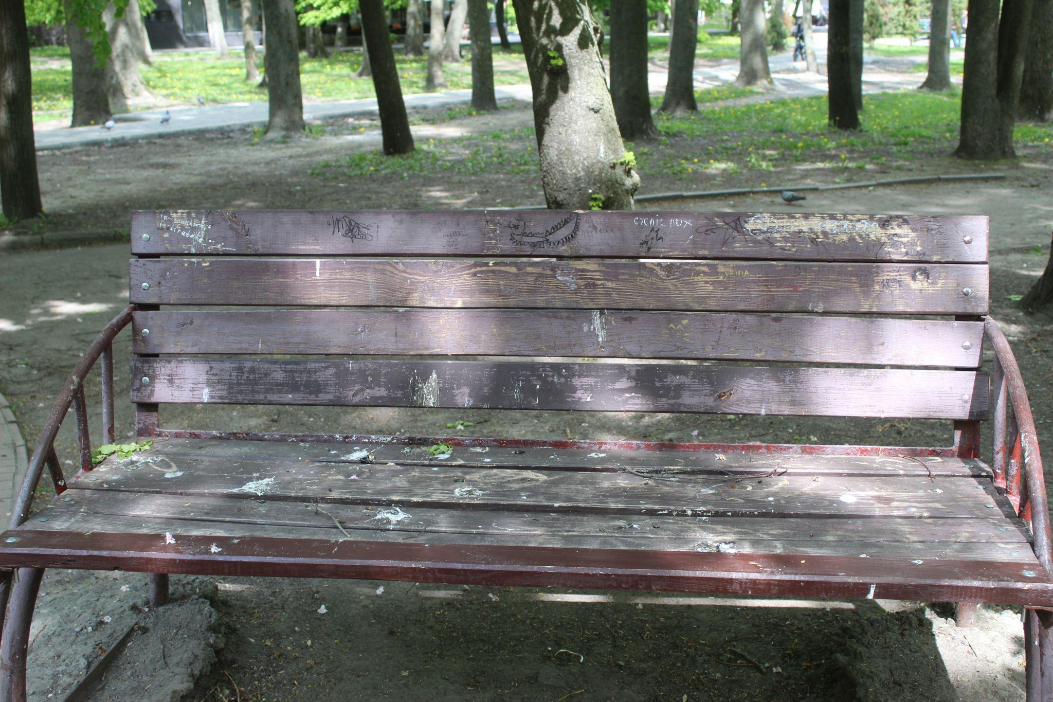 У міському парку ми зробили відкриття. Над пофарбованими лавками ворони не літають, а саму обляпану птахами вже витерли відпочиваючі сукнями й штанами. Дощечки на потрощених лавках працівники «Чистого міста» замінили. Тільки замовили вони ті дощечки мабуть у фокусника. Сидять на лавці двоє мініатюрних жінок, а дошки під ними прогнулися.