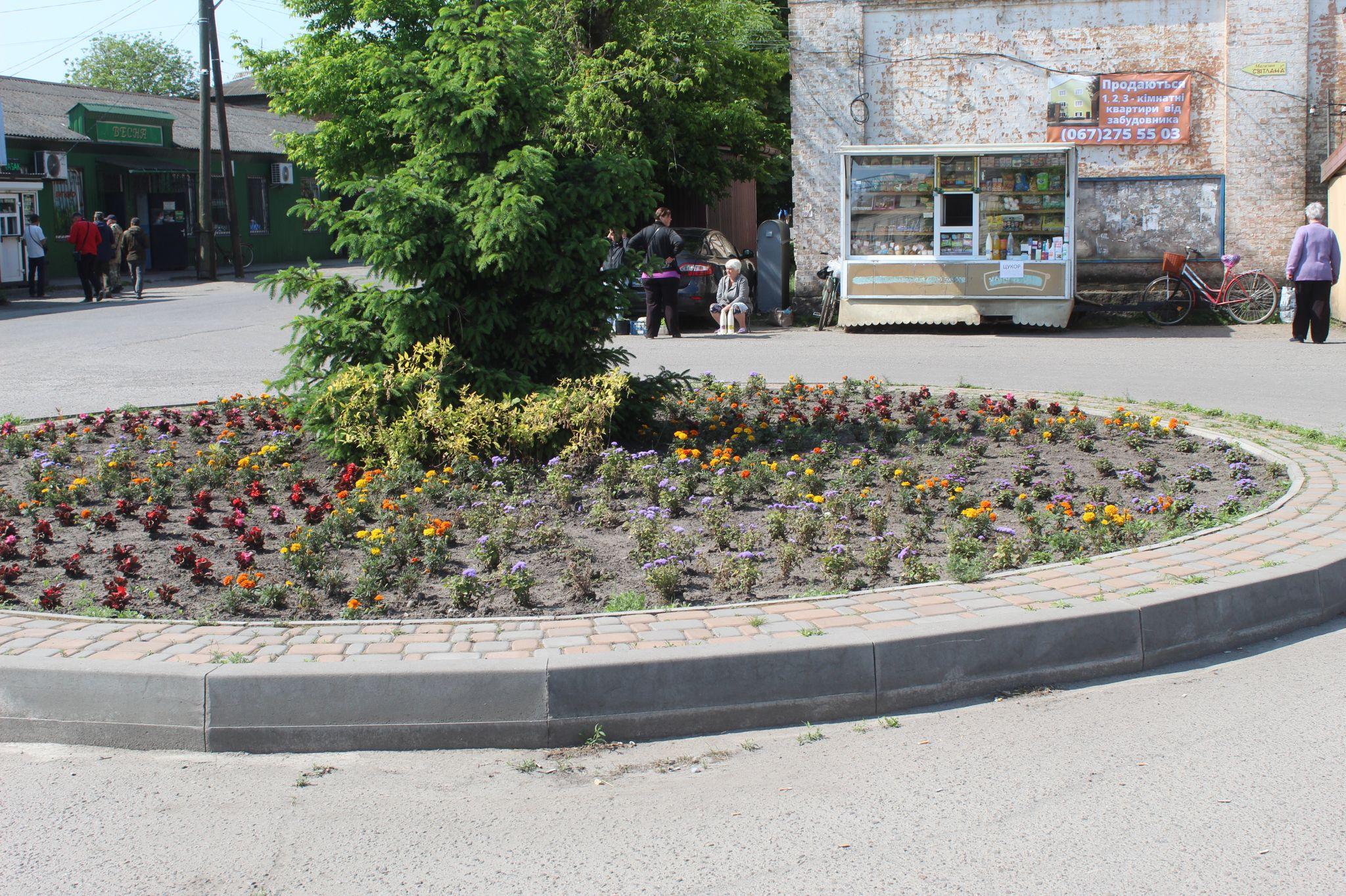Останнє фото ми зробили на кругу. Там працівники міської ради висадили на клумбі квіти. Але травневе сонце зробило свою справу. Деякі рослини зі слабкою кореневою системою вже засохли. Пересічні громадяни обурені. Кажуть: люди нашим воїнам допомагають чим можуть, а тут таке марнотрацтво бюджетних грошей.
