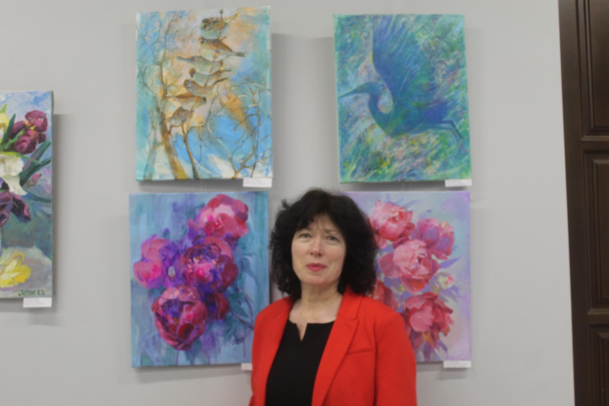— Оскільки виставка про весну, Великдень, то мої роботи про весну, але для мене весна — це почуття, це відродження природи, тому мої роботи з таким сюжетом — це горобці, яким ще трохи холодно, а в повітрі вже весна. Або наприклад квіти — (флорографія), що передає таємні послання, емоції та символи. Вони говорять про кохання, життєвий шлях, релігійні смисли, або слугують оберегами, де кожен вид квітки має своє унікальне значення, — сказала майстер живопису Анжела Коренкова.