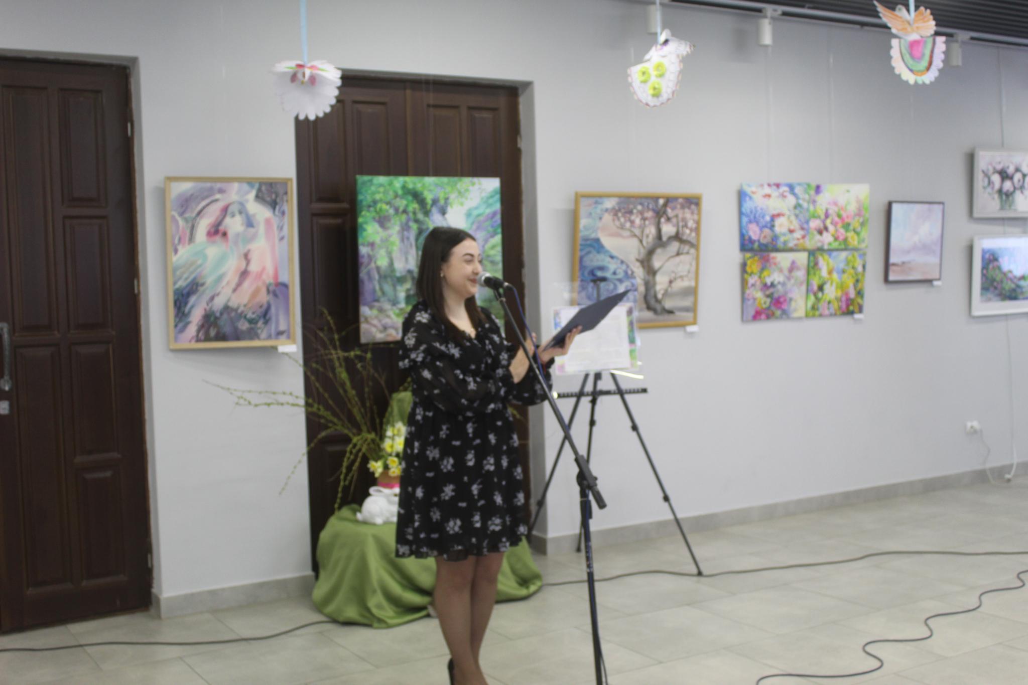 Урочисту частину виставки відкрила ведуча та режисер театральних заходів у Козятині Дар’я Мінаєва. У вступному слові вона зазначила, що у роботах художників цілий всесвіт. Тут оживає природа у своєму весняному буянні, розцвітають квіти, народжуються пейзажі, натюрморти, декоративні композиції, є ніжність у квіткових мотивах, є щирість.
