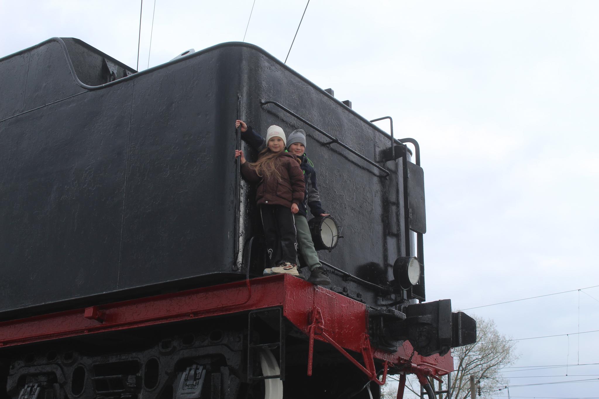 Відреставрований паротяг вже приваблює дітей. Вони з боку тендера карабкаються на верх і мають символіку залізничників, як фотозону.