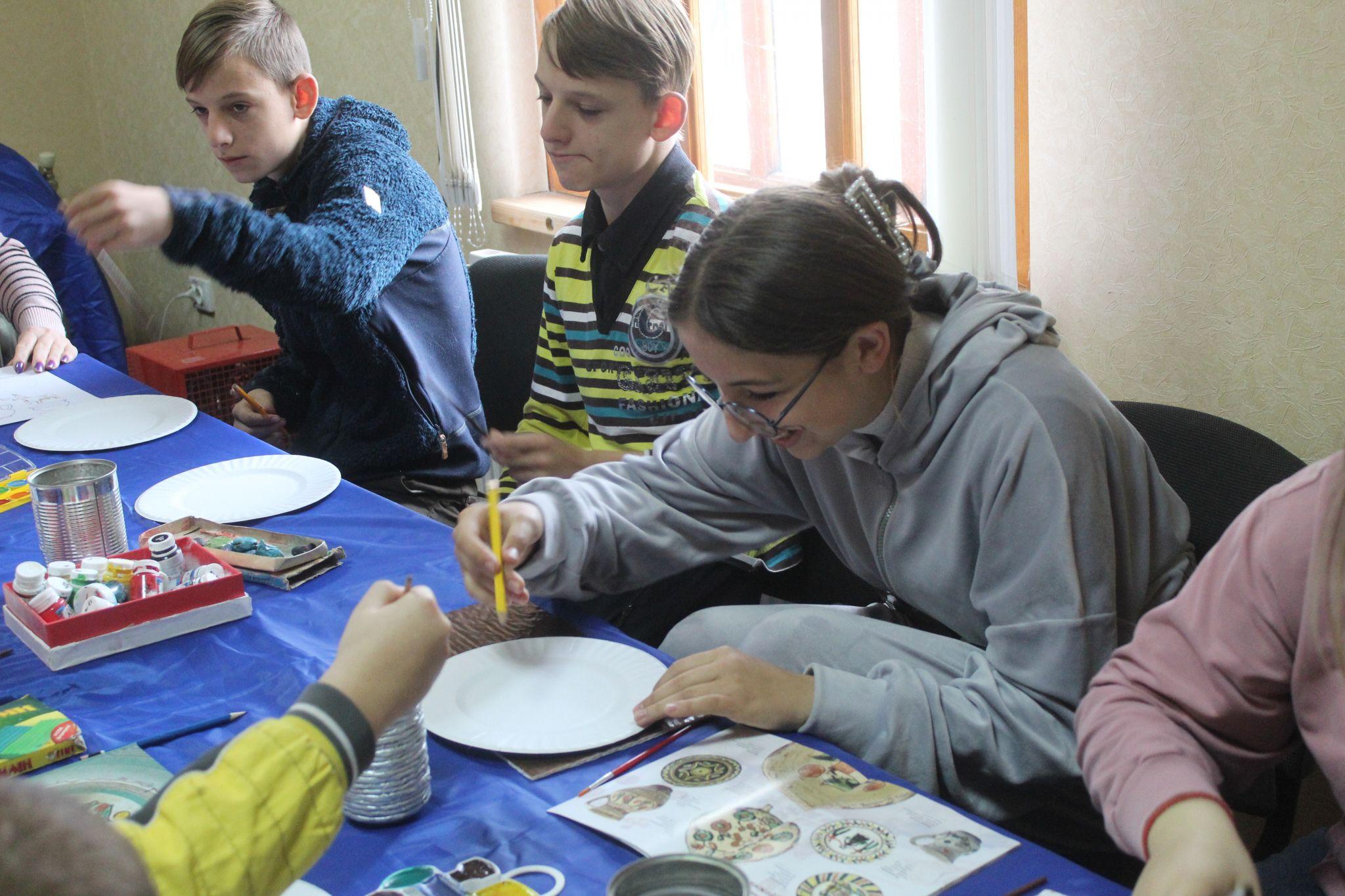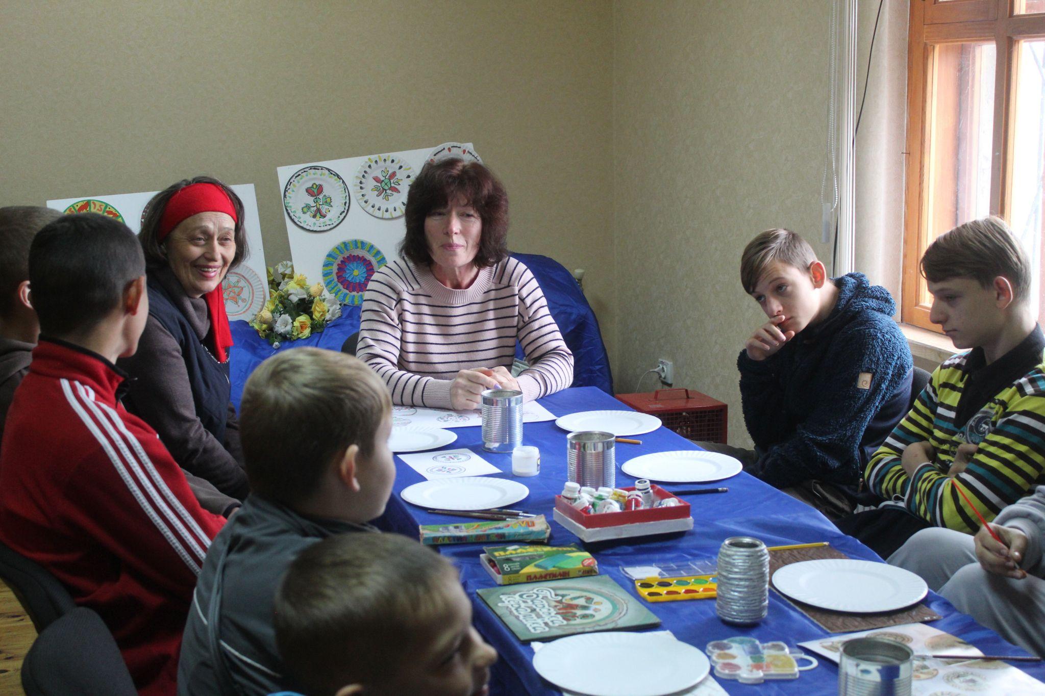 Коли майстриня розповіла секрети «Барської кераміки», діти приступили до практичної роботи. Наймолодший семирічний Вітя став малювати на тарілці японську сакуру. Красиве японське дерево росло на тарілці Віктора між прапорами України.