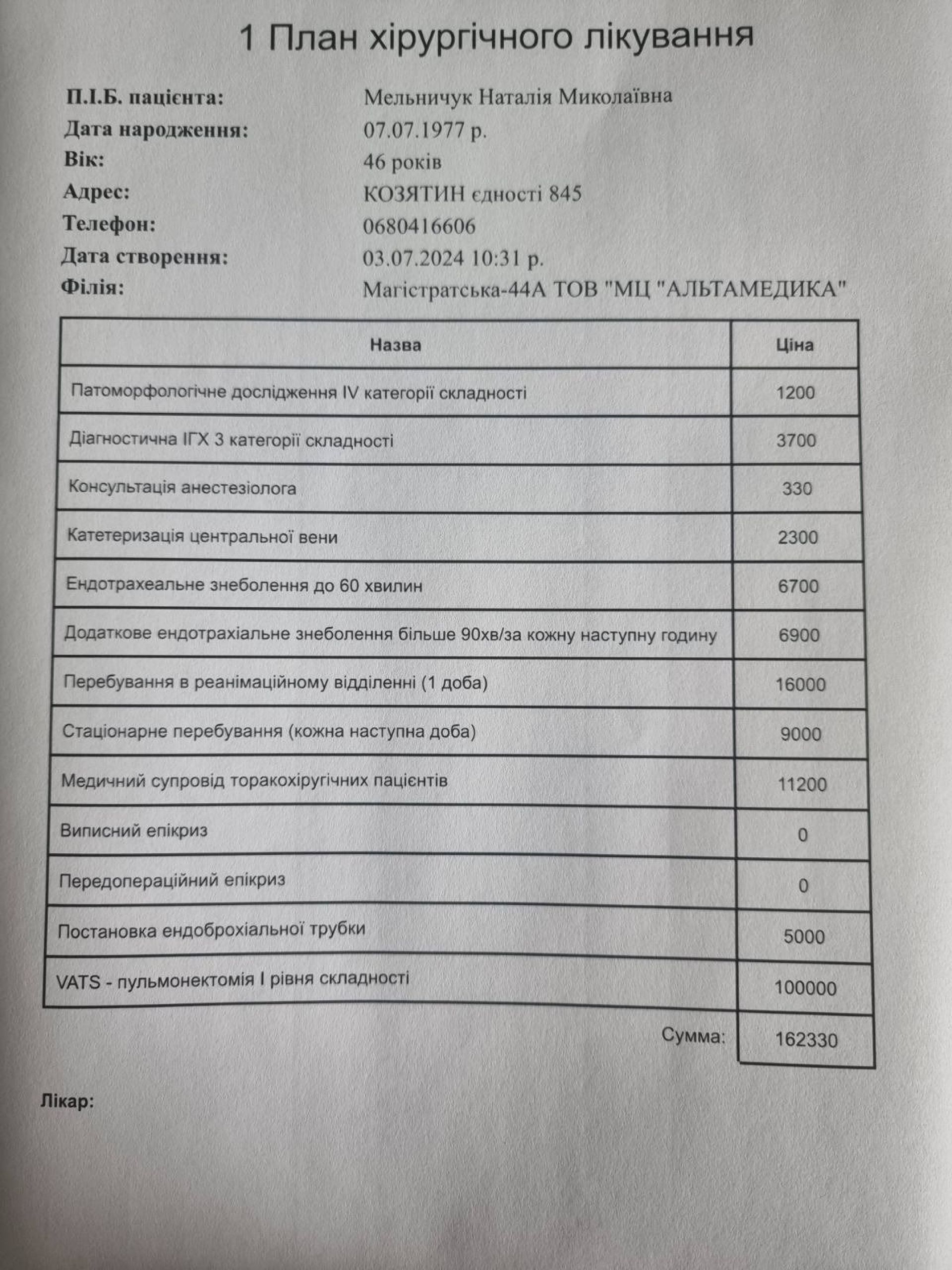 - Жінка звертається про допомогу і просить підтримати фінансово, адже попереду її чекає важка та дороговартісна операція на легені з подальшою реабілітацією.