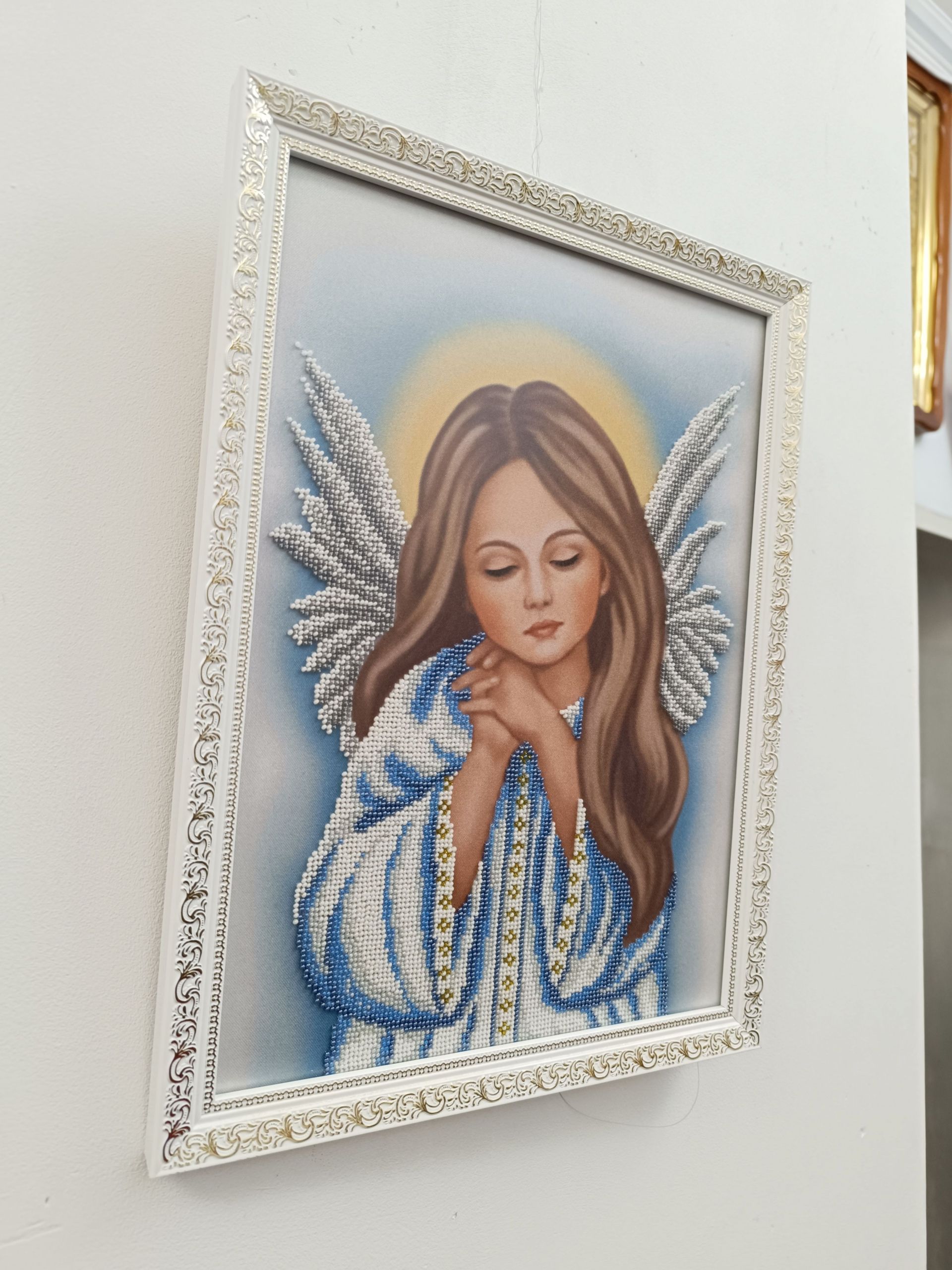 — Я пробувала і вишивку хрестиком, але відчула, що це не моє, — каже майстриня. — У мене вийшла невелика картинка — маки. Але я зрозуміла, що бісер мені набагато цікавіший і результат мені подобається значно більше, коли я вишиваю бісером, ніж нитками. Нещодавно я народила донечку і після цього почала вишивати картини більш на дитячу тематику: янголят, ікони, метрику. Щоправда, зараз менше часу на це все через материнство.