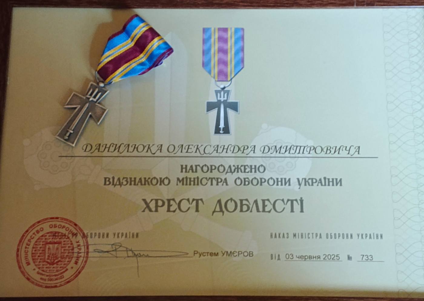 «Хрестом доблесті» нагородили нашого захисника Олександра Данилюка