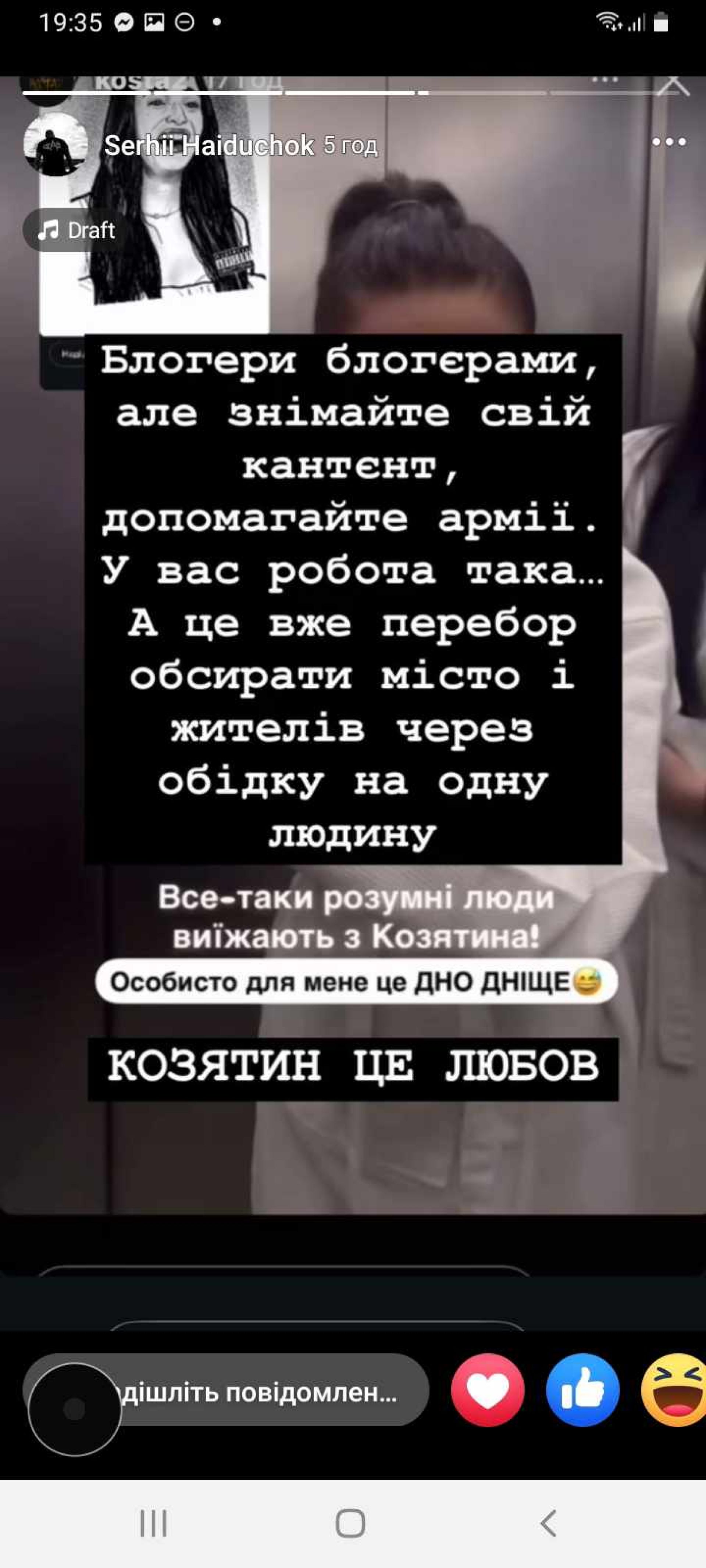- В одному із своїх сторіз дівчина сказала: «Все таки розумні люди виїжджають з Козятина. Особисто для мене — це дно». Це неабияк обурило козятинчан. Публікуємо їхні реакції