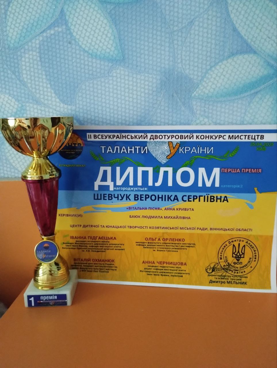 Як повідомляє Позашкілля Козятина, вихованка гуртка «Колектив естрадної пісні» при Козятинському центрі дитячо-юнацької творчості, взяла участь у Всеукраїнському конкурсі мистецтв «Таланти України» та виборола І місце.