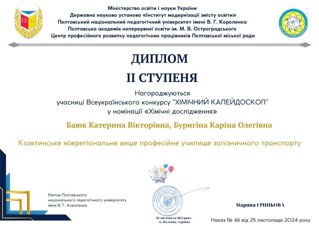 Козятинські студенти перемогли у Всеукраїнському конкурсі «Хімічний калейдоскоп»