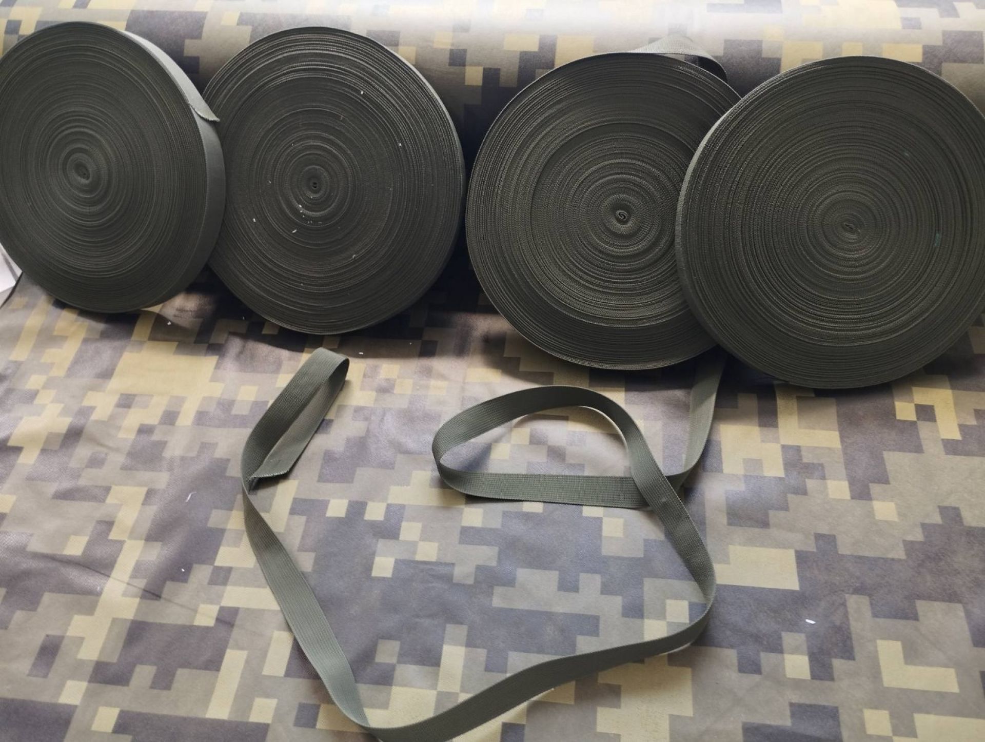 Не забули і про маскувальні сітки. Нагадаємо, у наших волонтерів напрямки допомоги на фронт багатосторонні. Для цього придбали 12 рулонів тканини для виготовлення і проплатили закупівлю 12 комплектів (мішків) сіток-основи. Це орієнтовно 6300 квадратних метрів сітки. Тридцять бобін ниток для плетіння основ вистачить на кілька десятків сіток.