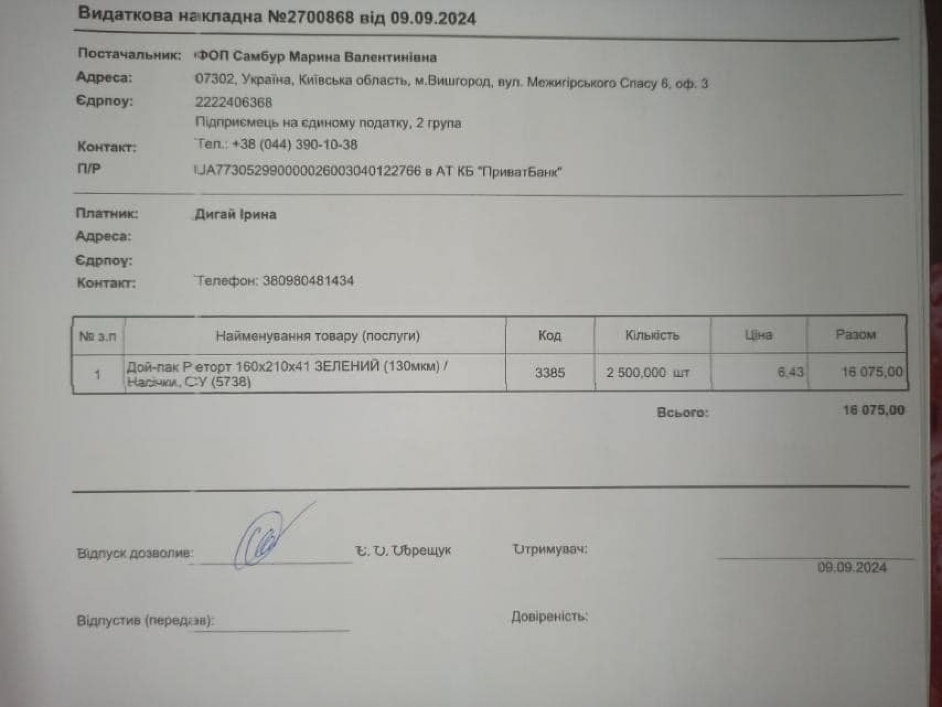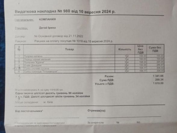 — Дякуєм родині Кожушних а регулярні донати 1500 гривень, чарівній людині за донат 500 гривень, чарівній пані за три свинячі голови та свинячі легені, печінку та почки на паштет! Ми працюєм та просим долучатись з допомогою якщо маєте змогу. Маємо запити від військових на картоплю. Так, так — на картоплю! Також ми будем вдячні за капусту,гречку,помідори,перець болгарский, часник .Ну і звичайно сало,чай,печиво, цукерки, — пише Ірина