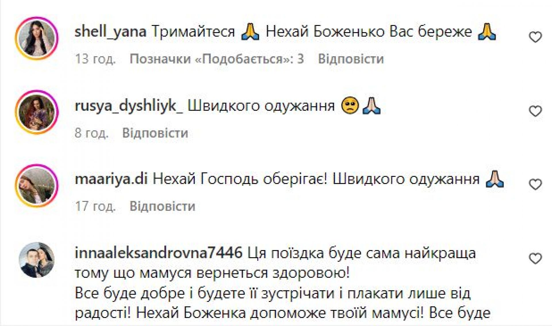 — Ми доведемо, що рак це не приговор! Мамуся обов’язково вилікується і приїде до нас! І буде продовжувати свою добру справу. Сказати, що боляче нічого не сказати…пече в грудях.. але я знаю, що вона дуже сильна і поїхала аби вилікуватись! Вона неймовірна! Вона ніжна … прекрасна і неймовірно добра! — написала на своїй сторінці в Інстаграм донька Ірини Софія