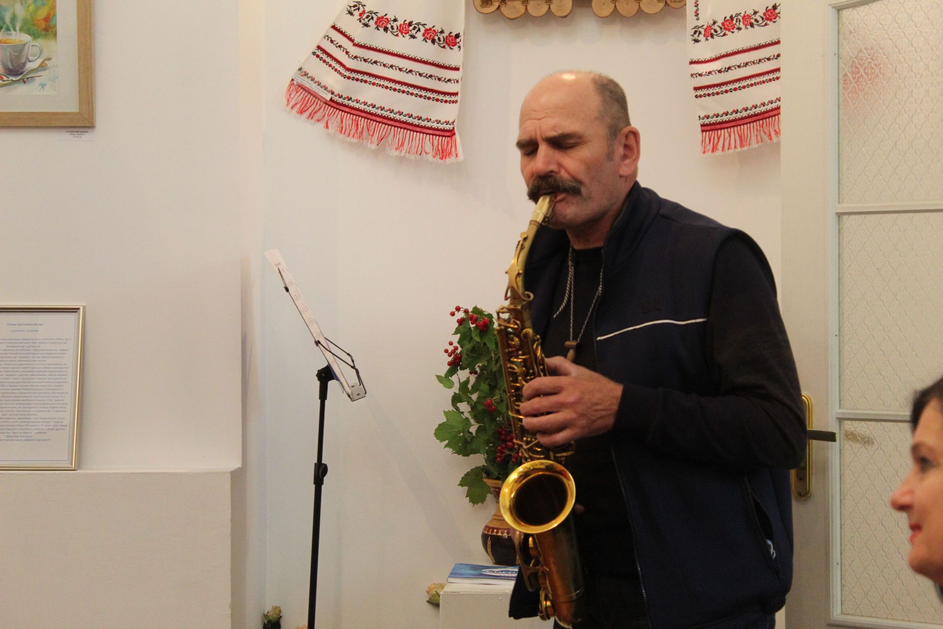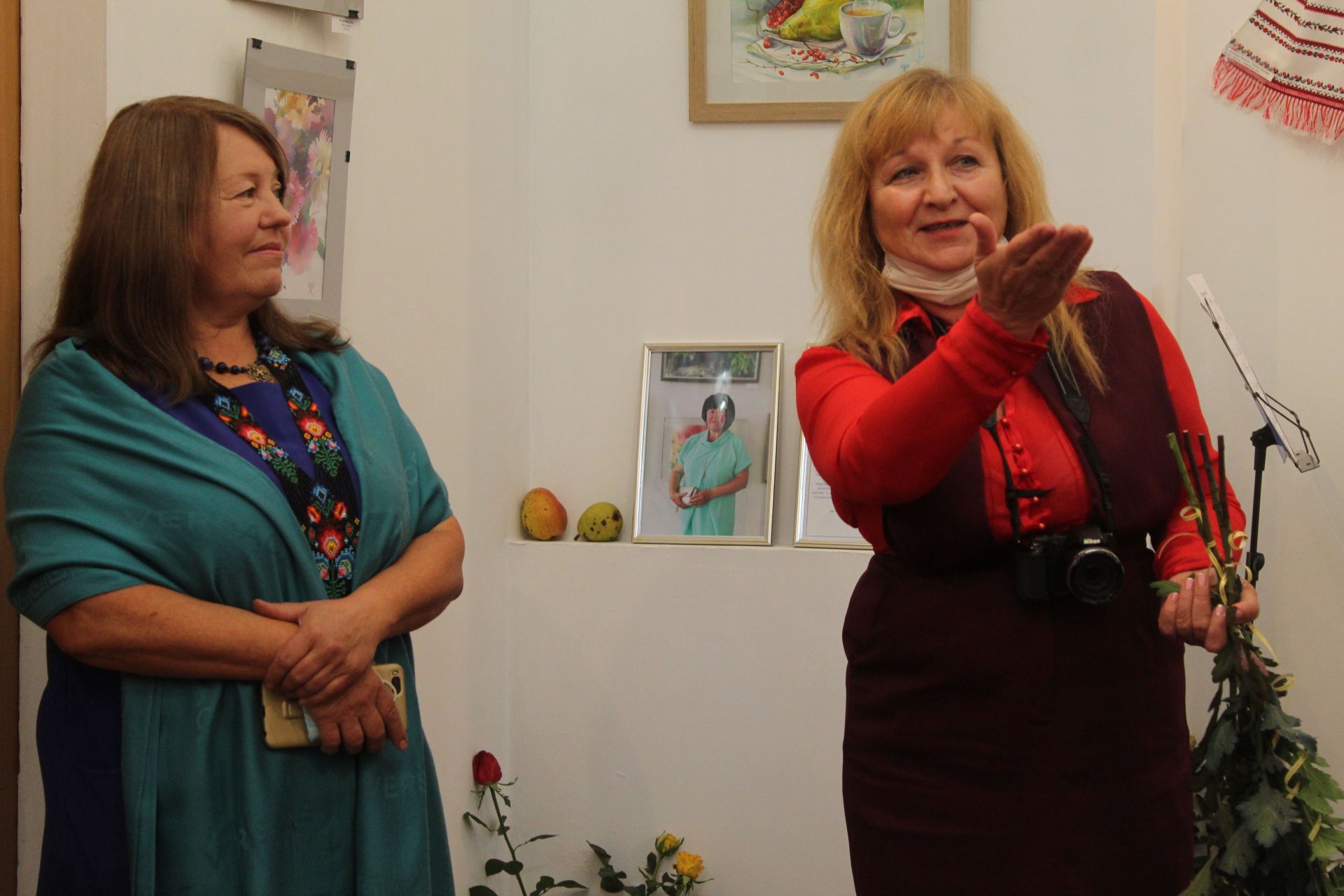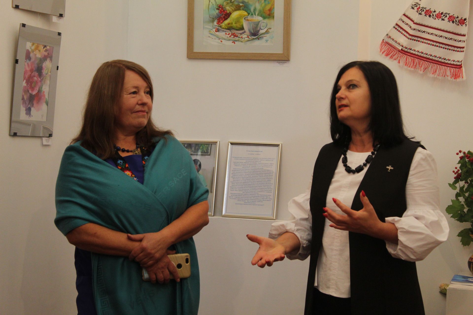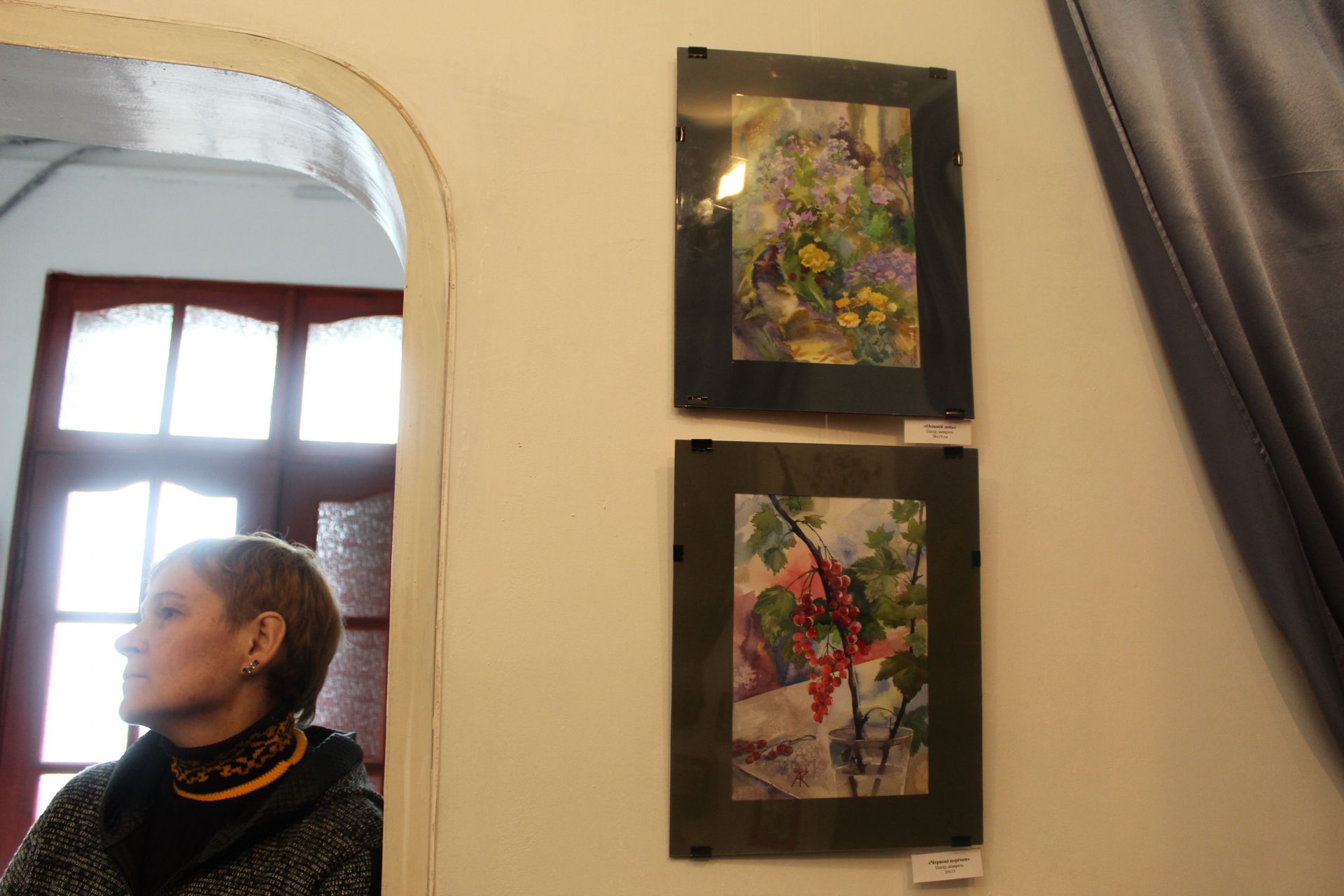— Для себе я виділив дві роботи які мені сподобалися з першого погляду. Це букет квітів і фон тіні. Шикарно. Для акварелі важко це передати, щоб накласти одне на одне. Вражаючий вийшов натюрморт. І скляна баночка, хризантеми, калина. Вражаюче. По технології виконано супер чисто, — каже художник Віктор Кльоц.