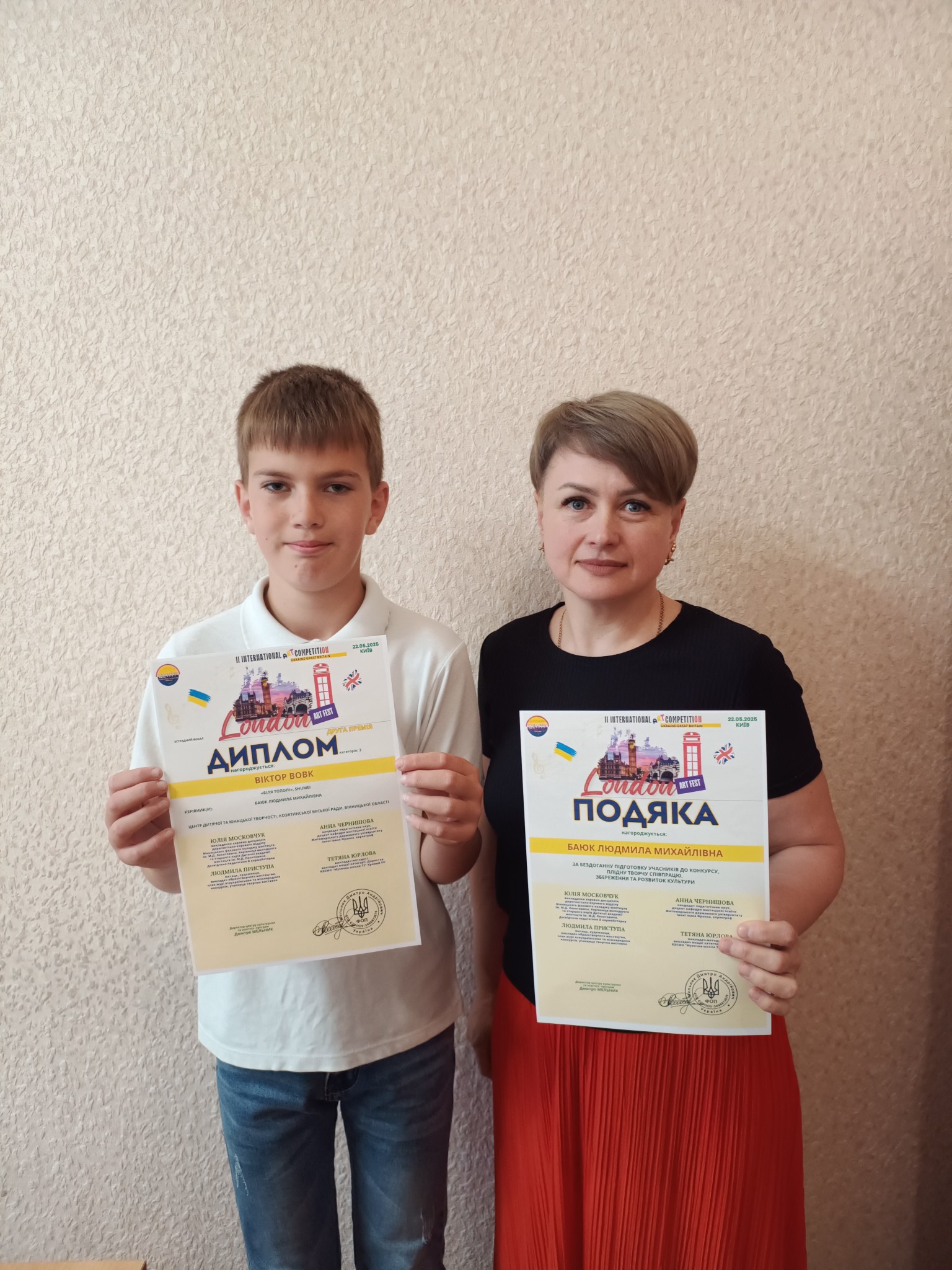 Так, нещодавно вихованець гуртка «Колектив естрадної пісні» Вовк Віктор взяв участь у ІІ International ART competition «London ART FEST» з піснею «Біля тополі» та здобув ІІ премію.