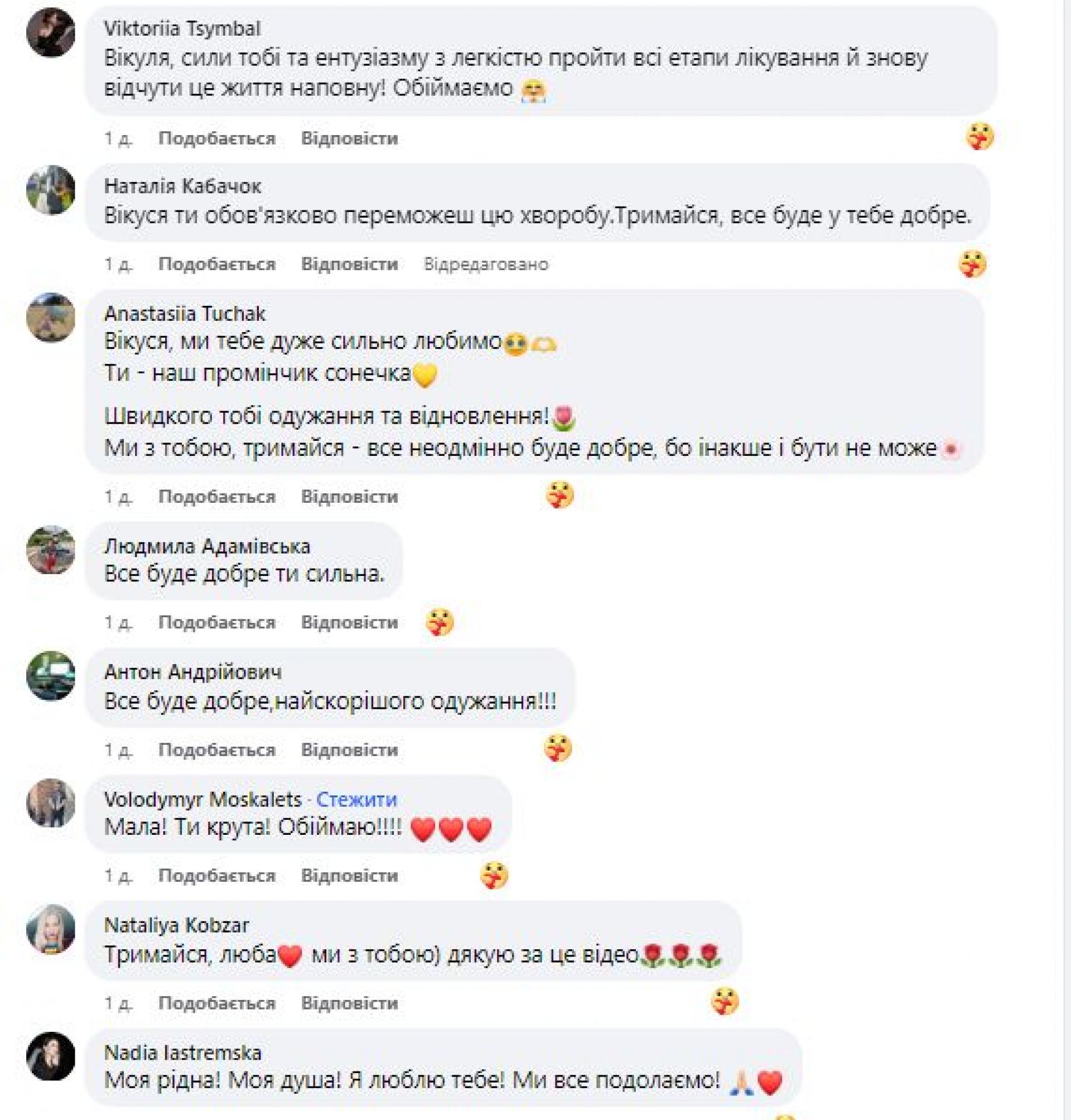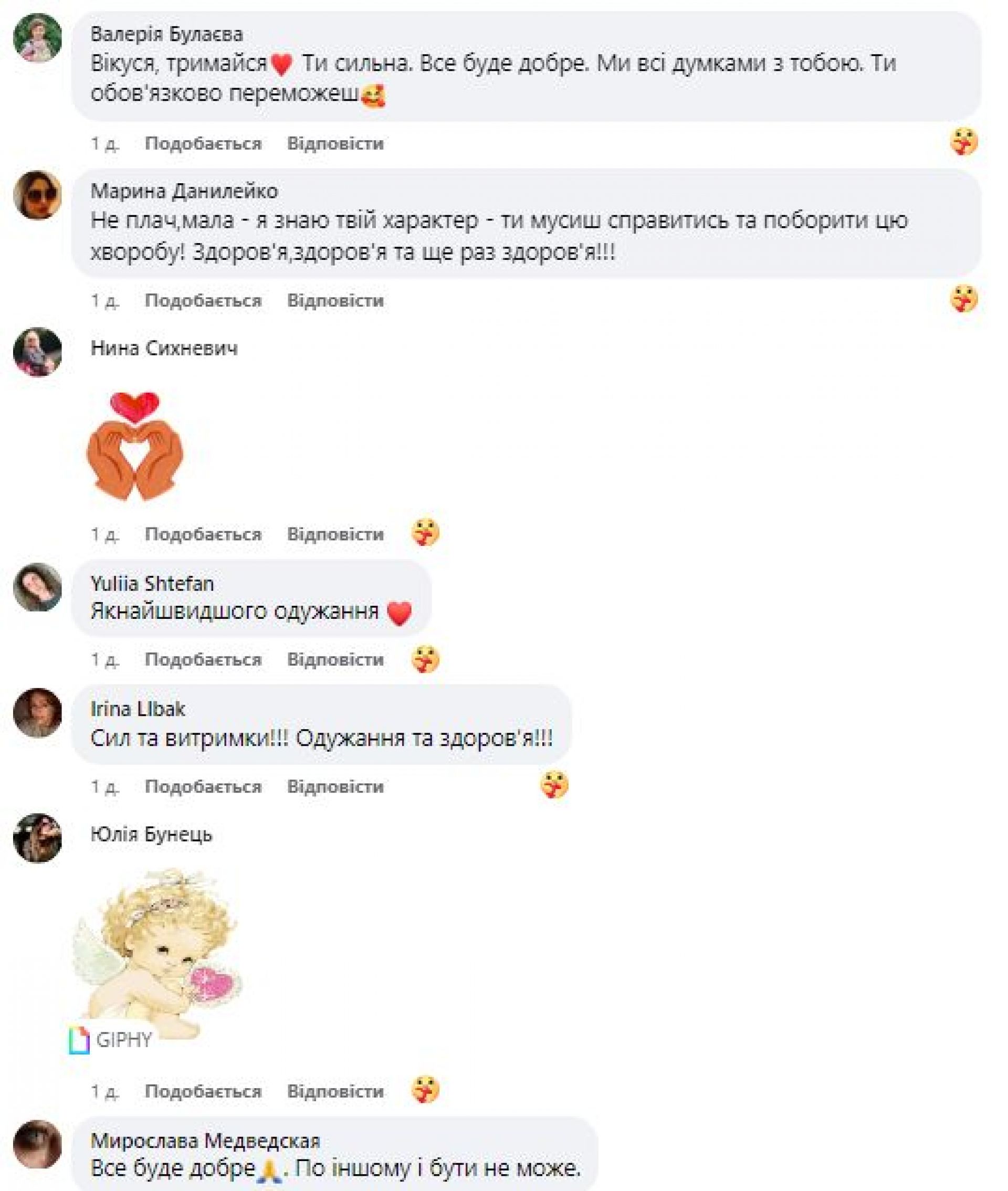 Земляки, рідні та близькі шлють Вікторії побажання якнайшвидшого одужання