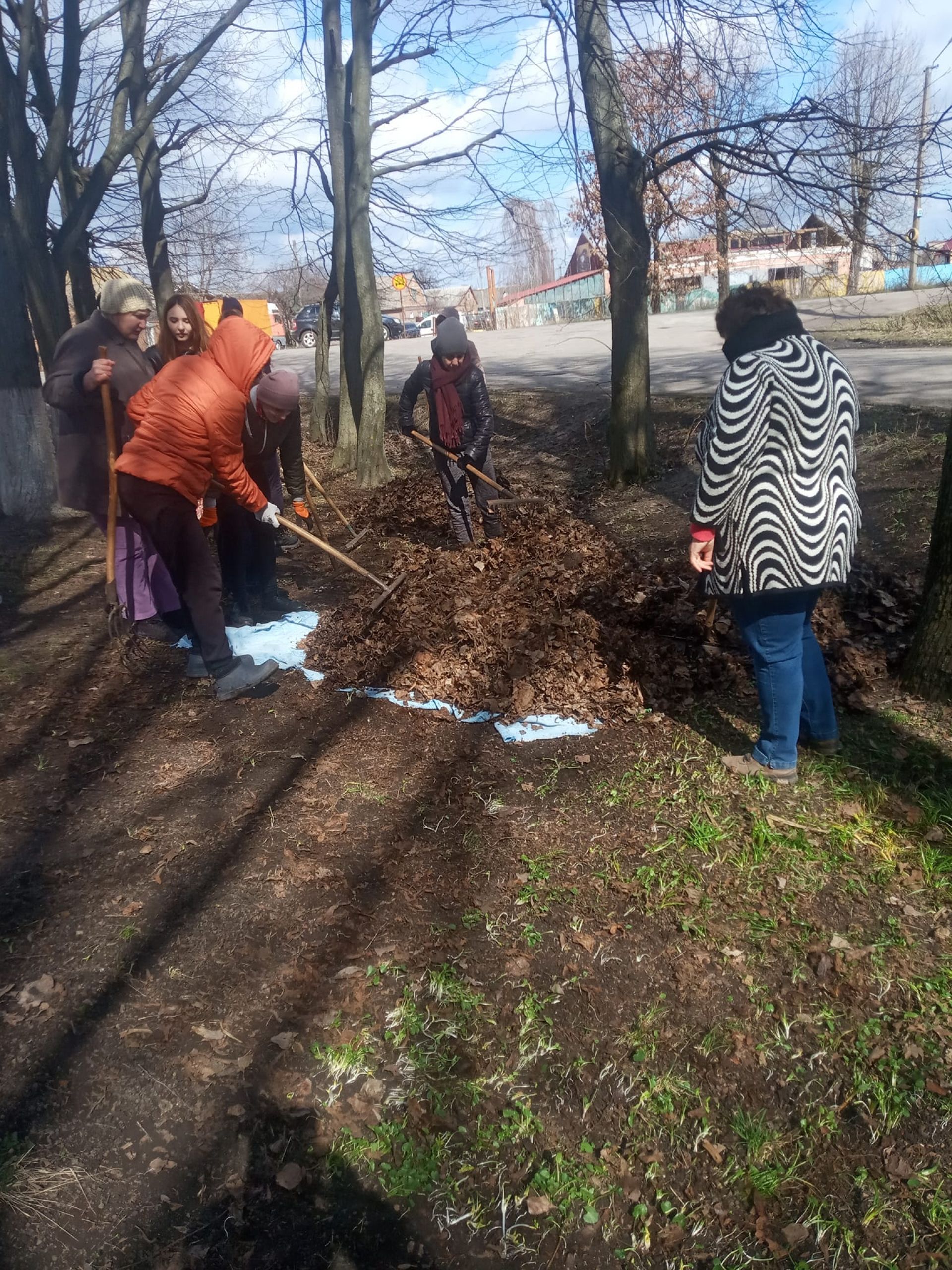 - Днями до справи долучилися педагогічні працівники. Вони за кілька годин спільної роботи прибрали опале листя на алеї та розпочали упорядковувати решту території.