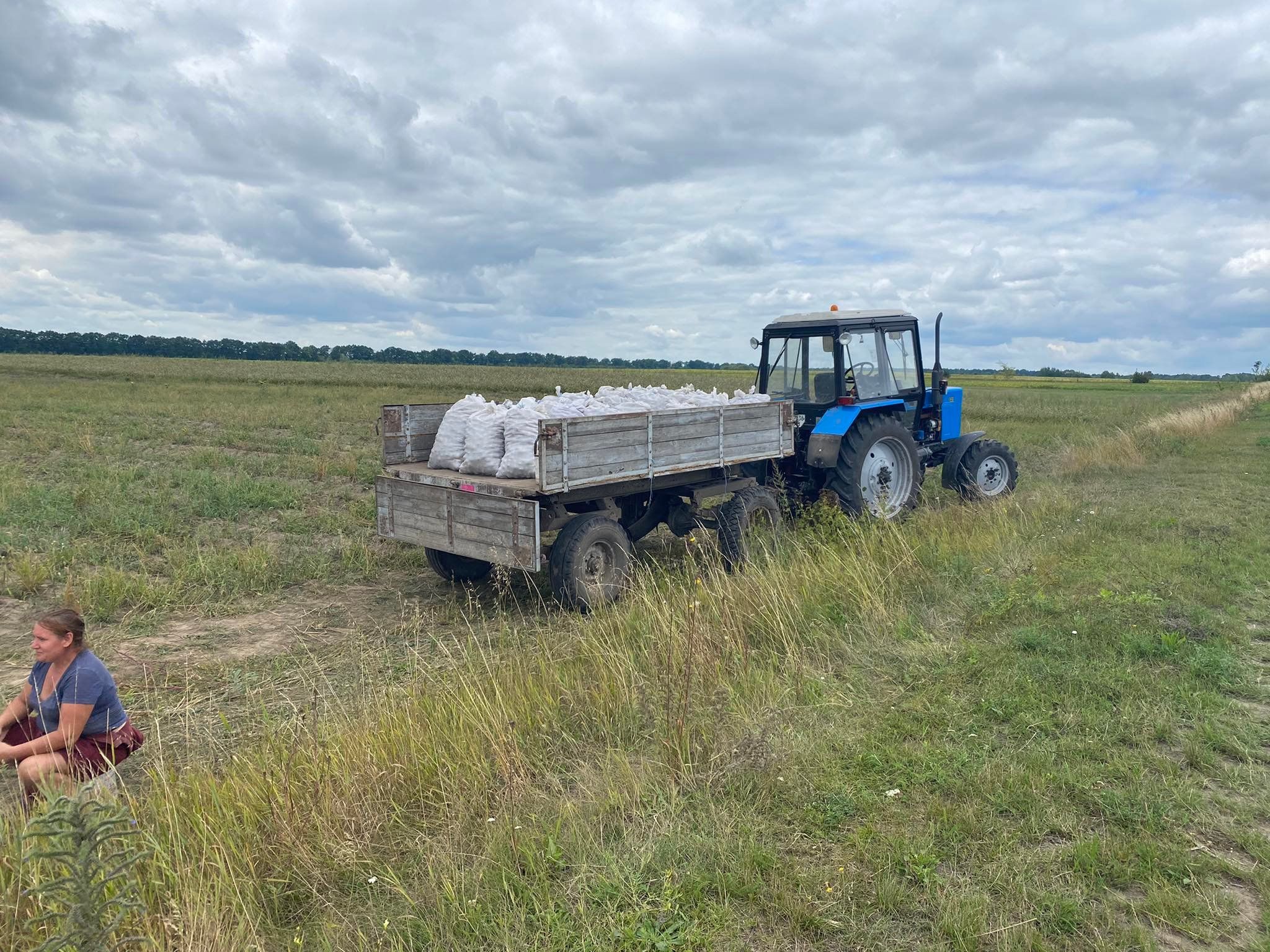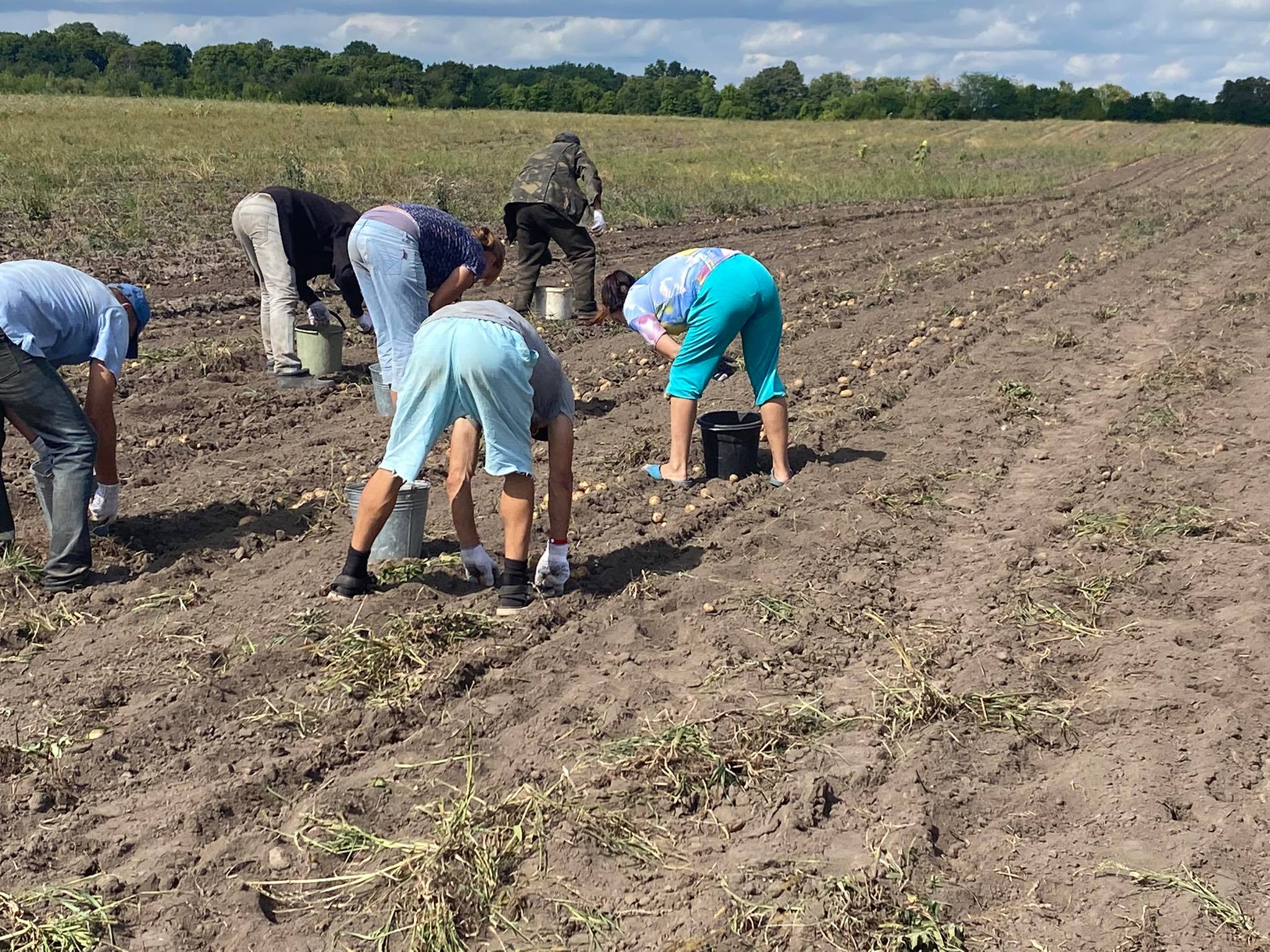 - Проїжджаючи рубаним шляхом зустріли наших старих знайомих фермерів «Махаринецького агро». Вони бригадою в 15 осіб збирали картоплю на полі.
