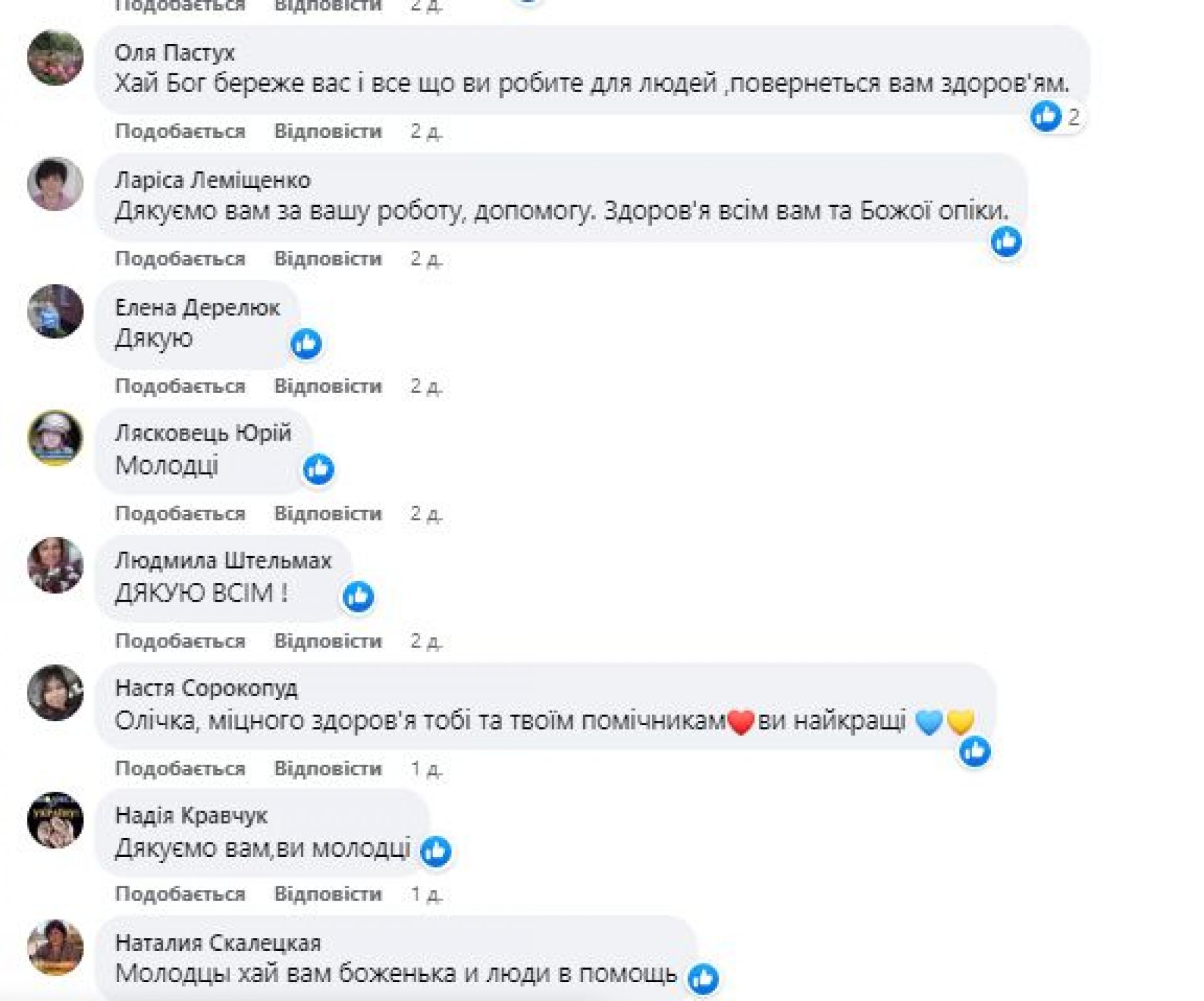 Козятинчани висловлюють слова вдячності Ользі та всій її команді