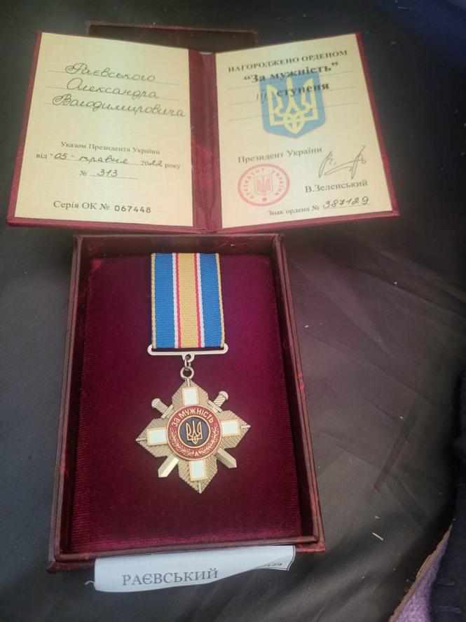 Серед нагороджених старший лейтенант Олександр Раєвський. Його відзначили орденом «За мужність» третього ступеня.